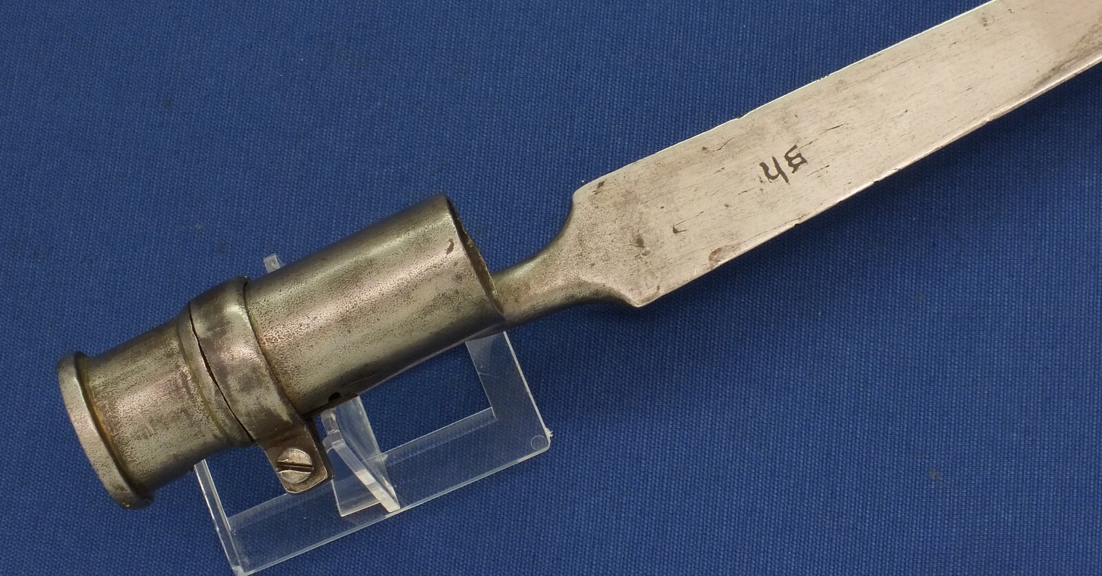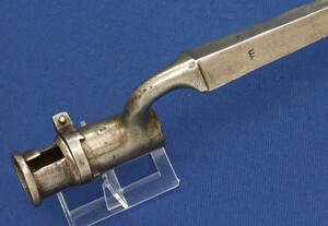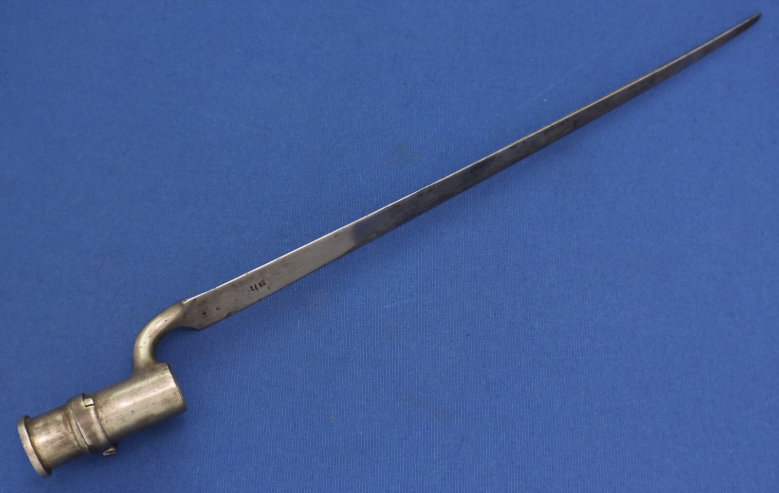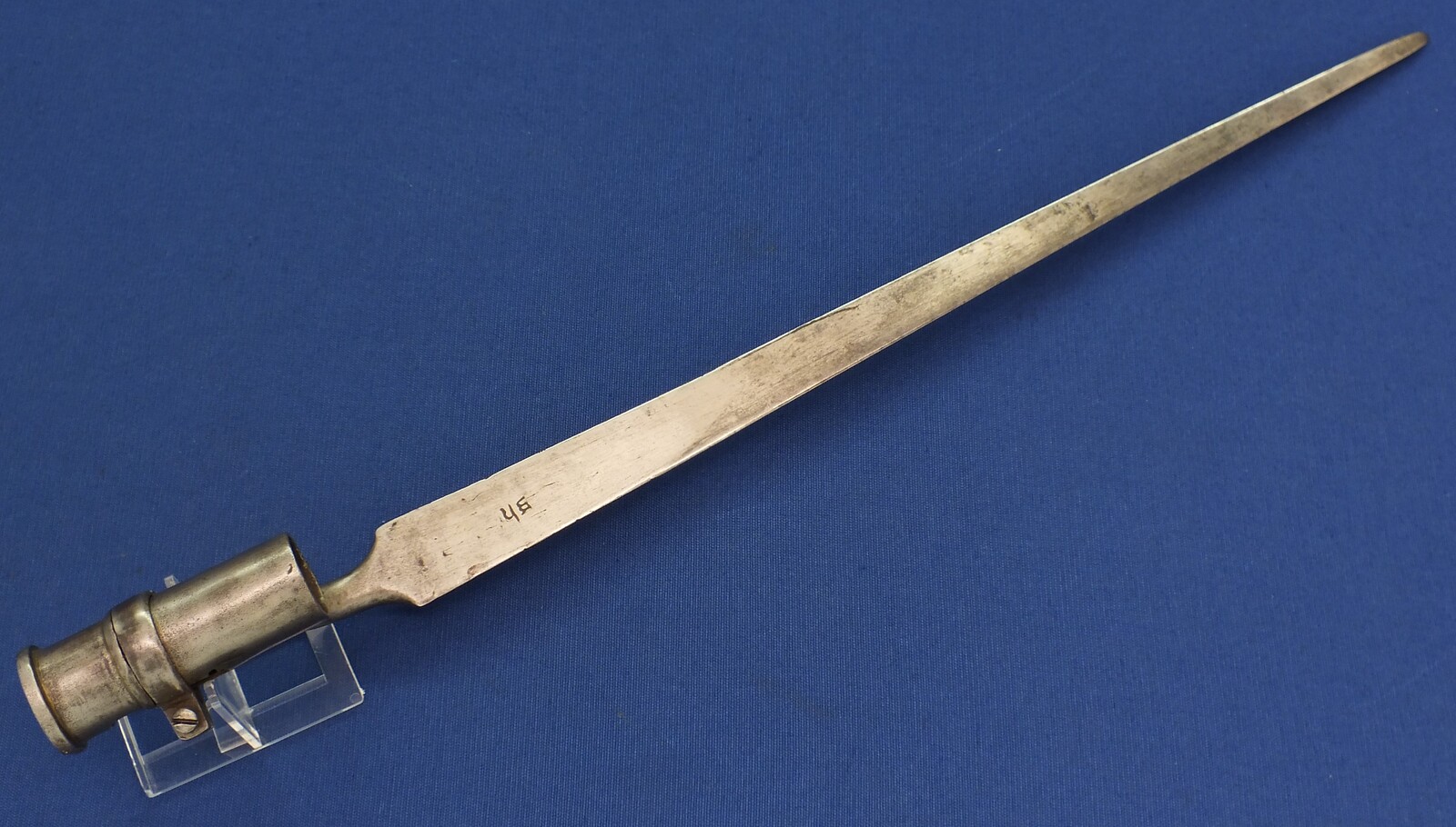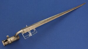 An antique India made Bayonet for Indian Brown Bess Musket with locking ring. Length 49,5cm, socket lenght 78mm. In very good condition.