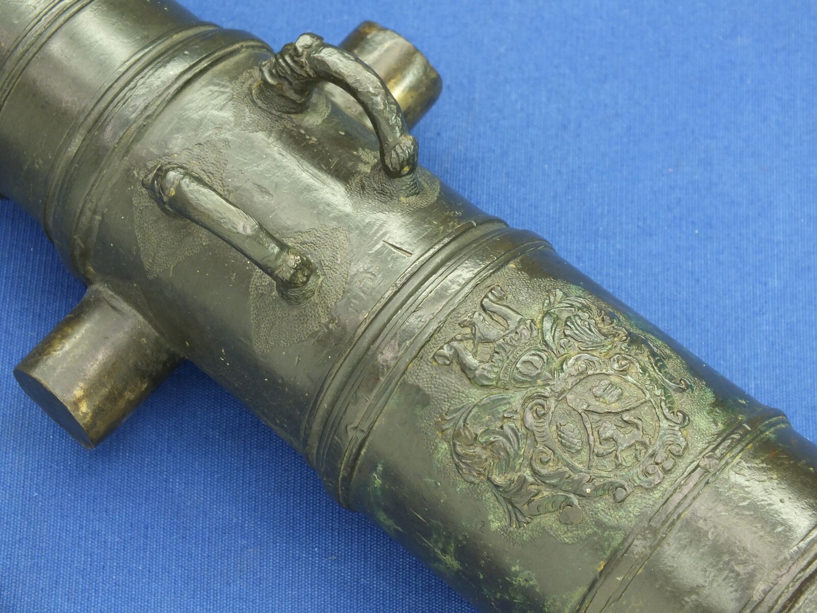 A fine antique 17th century small Bronze probably Russian cannon with unknown Coat of arms. Caliber 27mm, length 52 cm. In very good condition. Price 4750,- euro