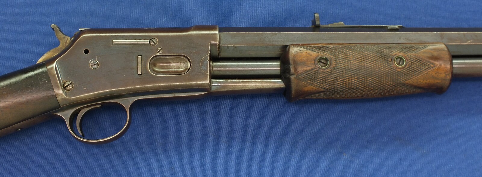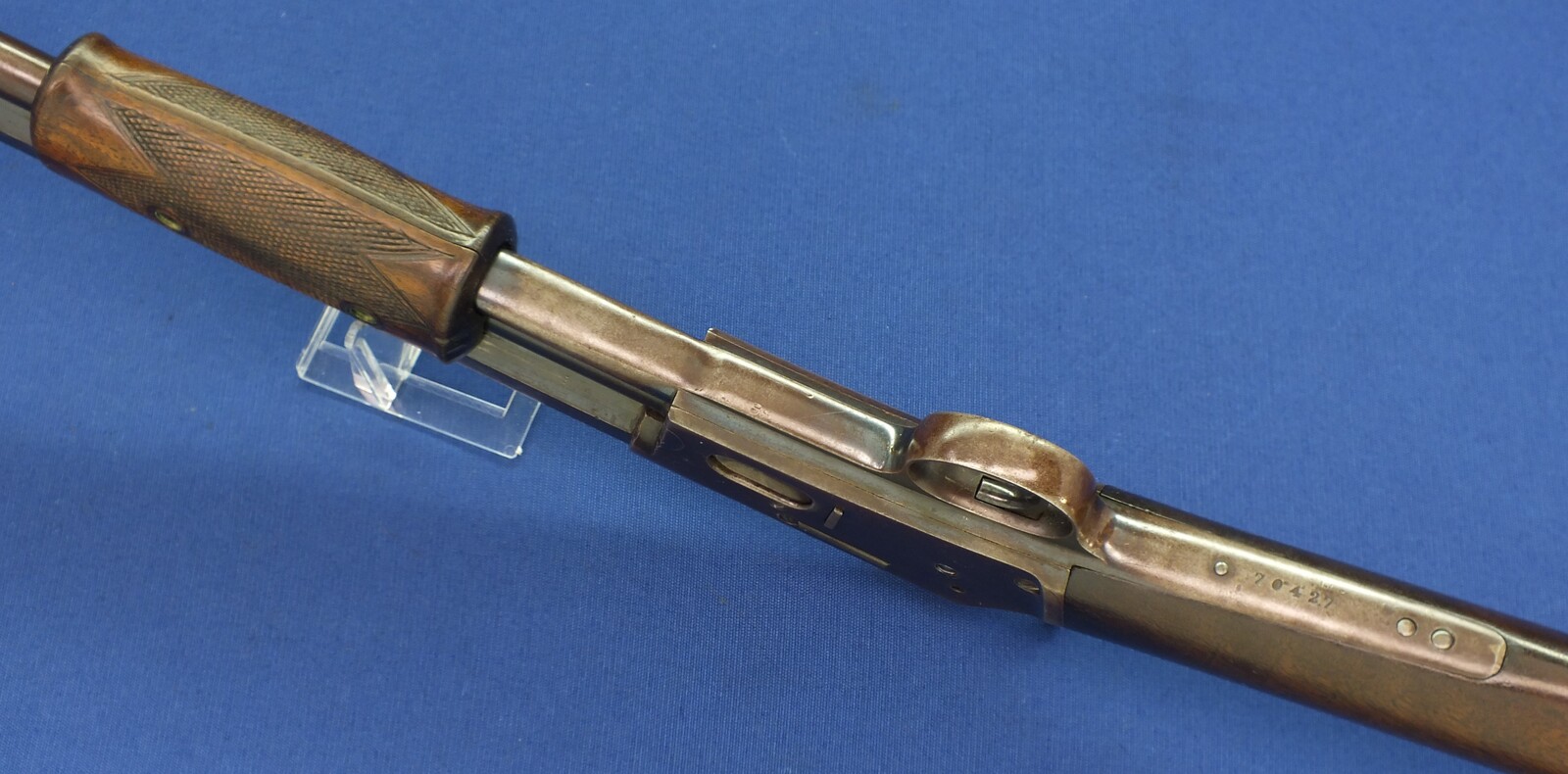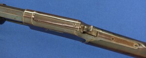 A fine antique American Colt Lightning Slide Action Medium Frame Rifle, Caliber 32-20, 26 inch octagonal barrel, SN70427, length 109 cm, in very good condition.