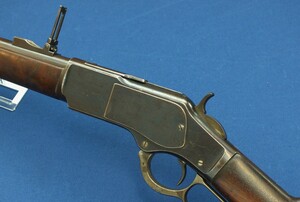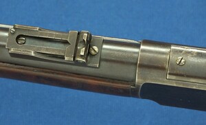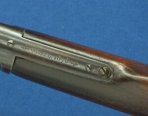 A fine antique American Winchester Model 1873 Musket. Caliber 44-40. 30 inch barrel with clear address. Made 1894. Length 124cm. In very good condition. Price 6.650 euro.