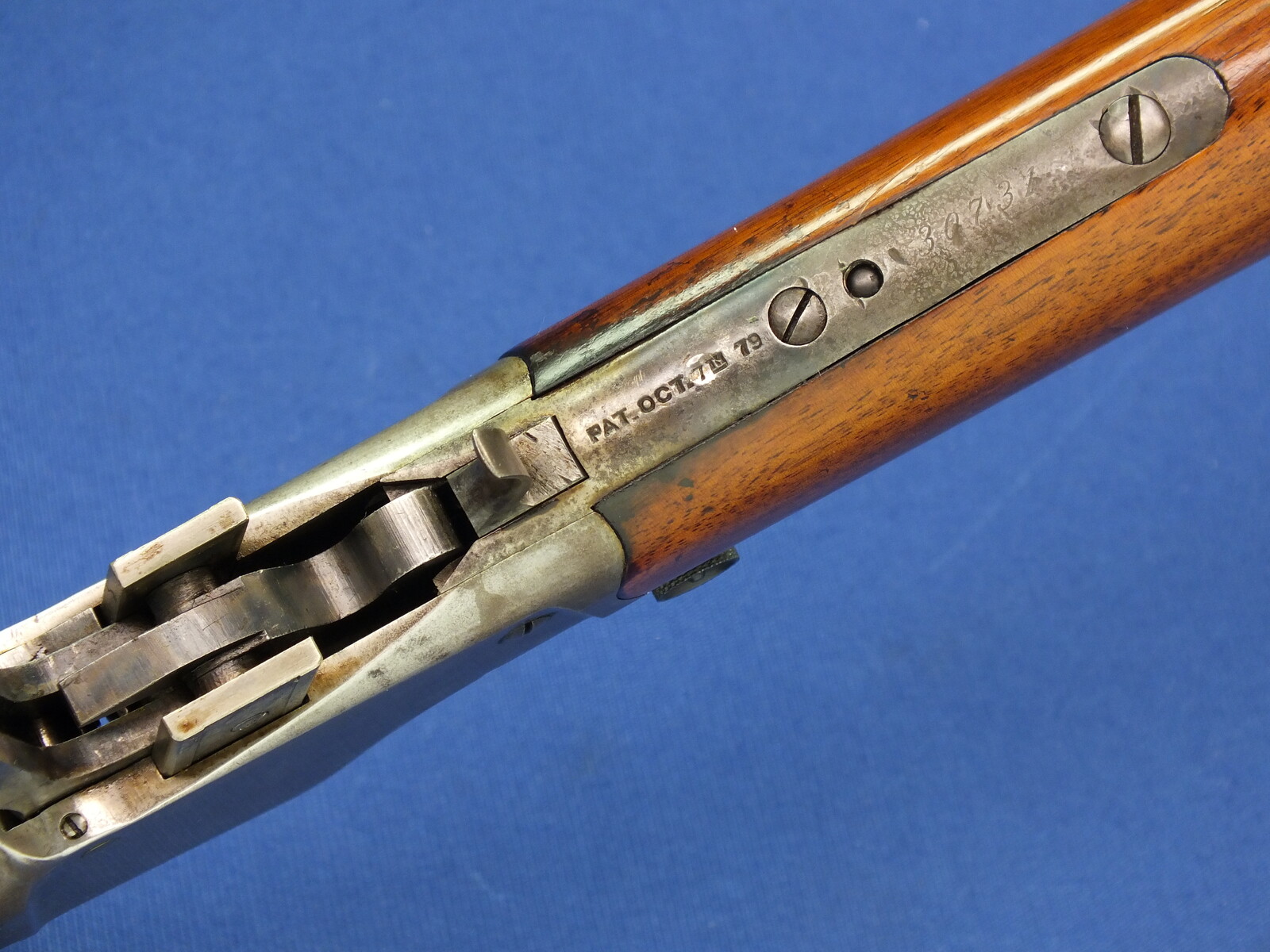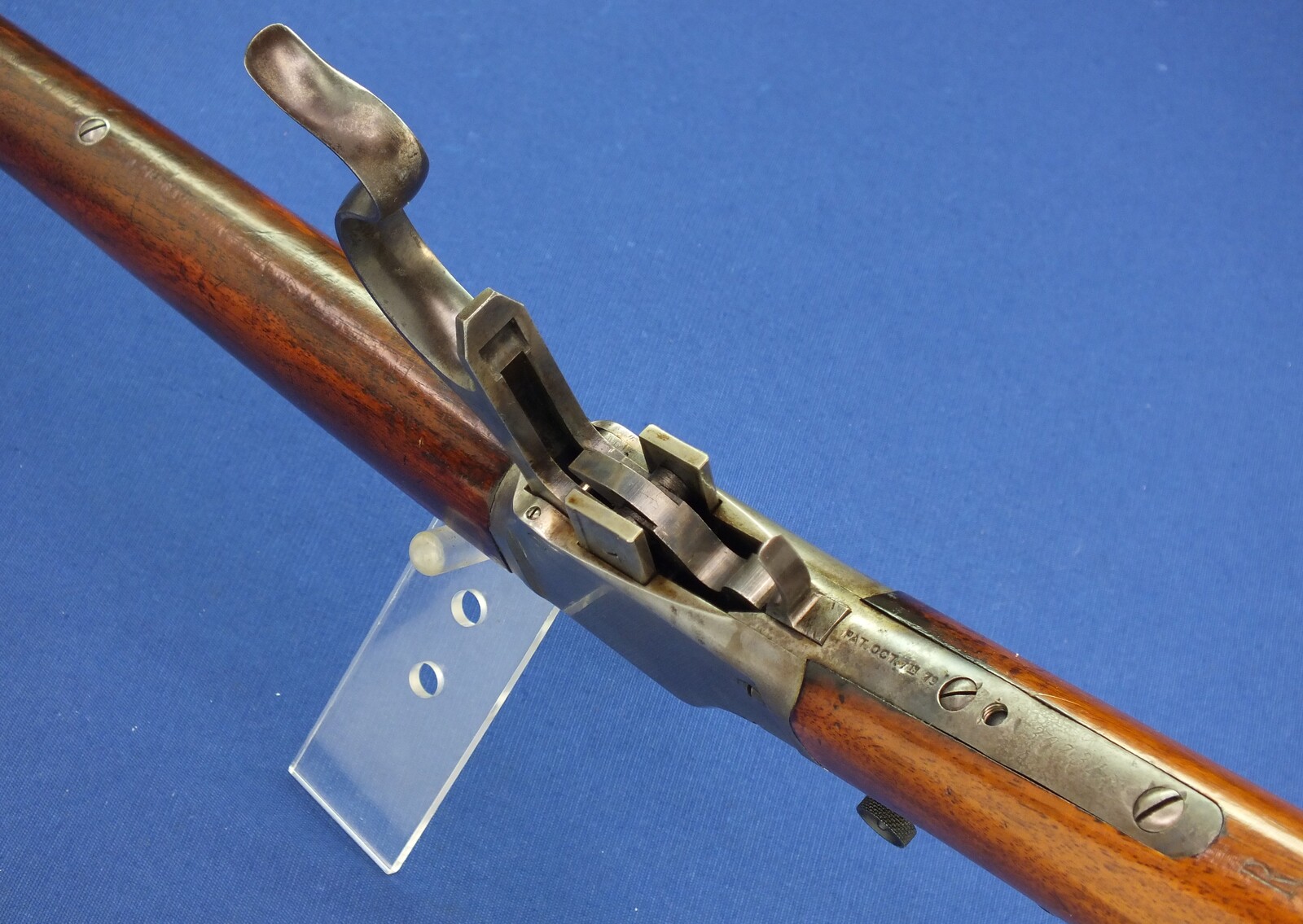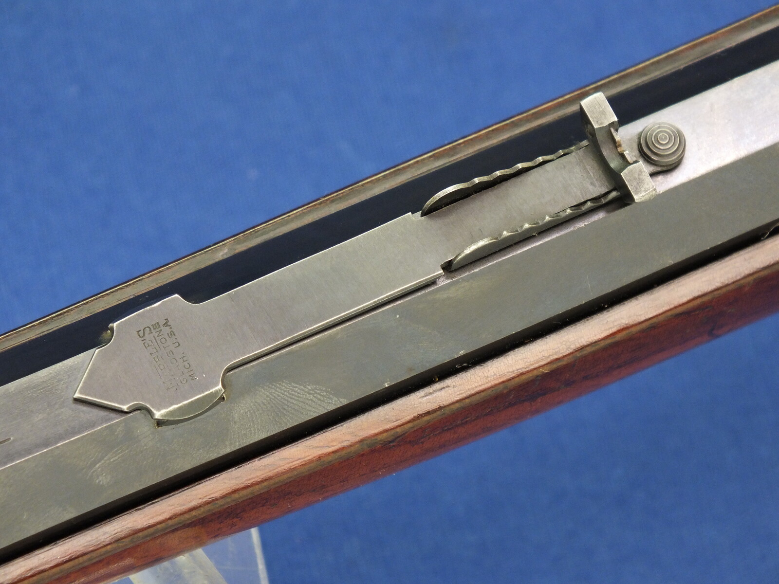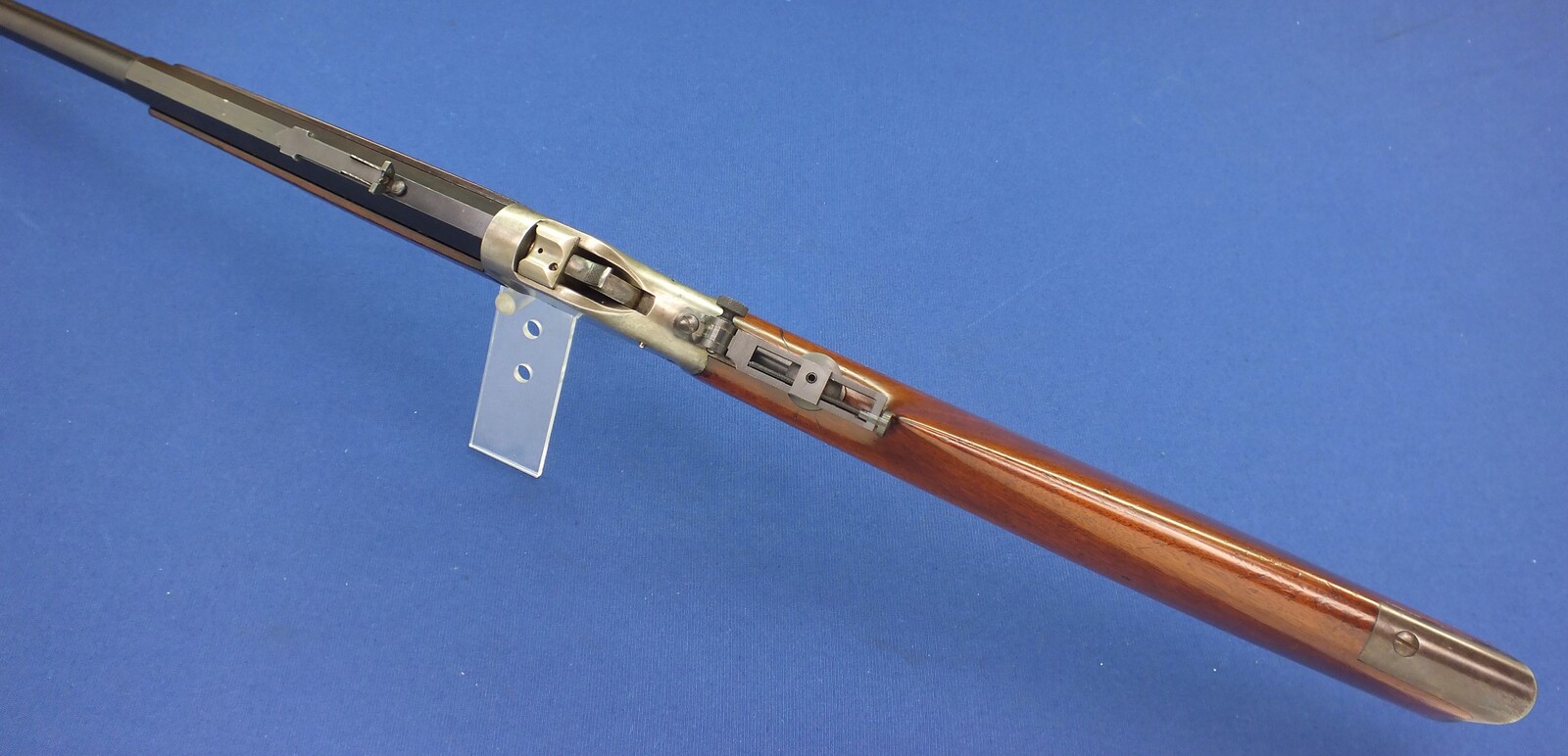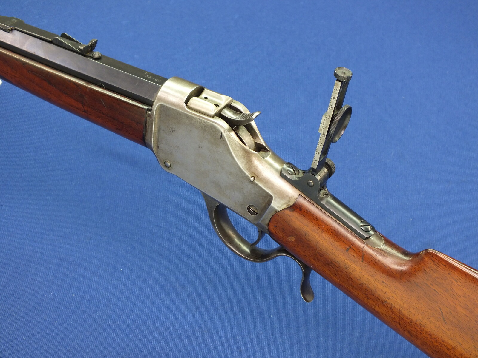 SN 30731. Lot of original blue with clear address and caliber. Reproduction graduated rear sight. Rests case hardening on the frame. Fine stock in original finish.