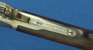 A fine antique American Winchester special order Model 1886 Rifle. Caliber 40-65 with 26 inch Octagon barrel. Length 114cm. In very good condition. Price 7.500 euro.