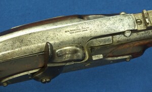 A rare antique American Civil War First type Merrill breechloading percussion Carbine. Caliber 54, 22,1/8 inch barrel. Length 94cm. In very good condition.