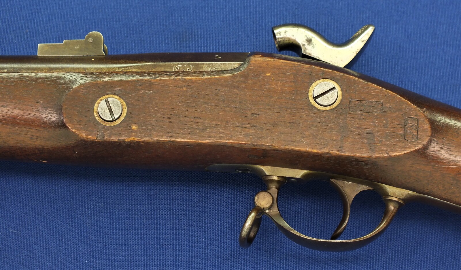 Barrel and lock dated 1862. 40 inch barrel marked N.J. for New Jersey contract. Clear inspectors markings on all parts.