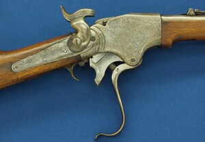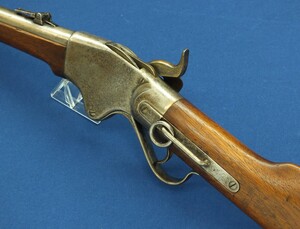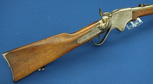 An antique American Spencer Repeating Carbine Model 1865 with Stabler Cut-Off. Caliber .50 Rimfire, 20 inch barrel. Length 95cm. In very good condition. Price 2.500 euro.