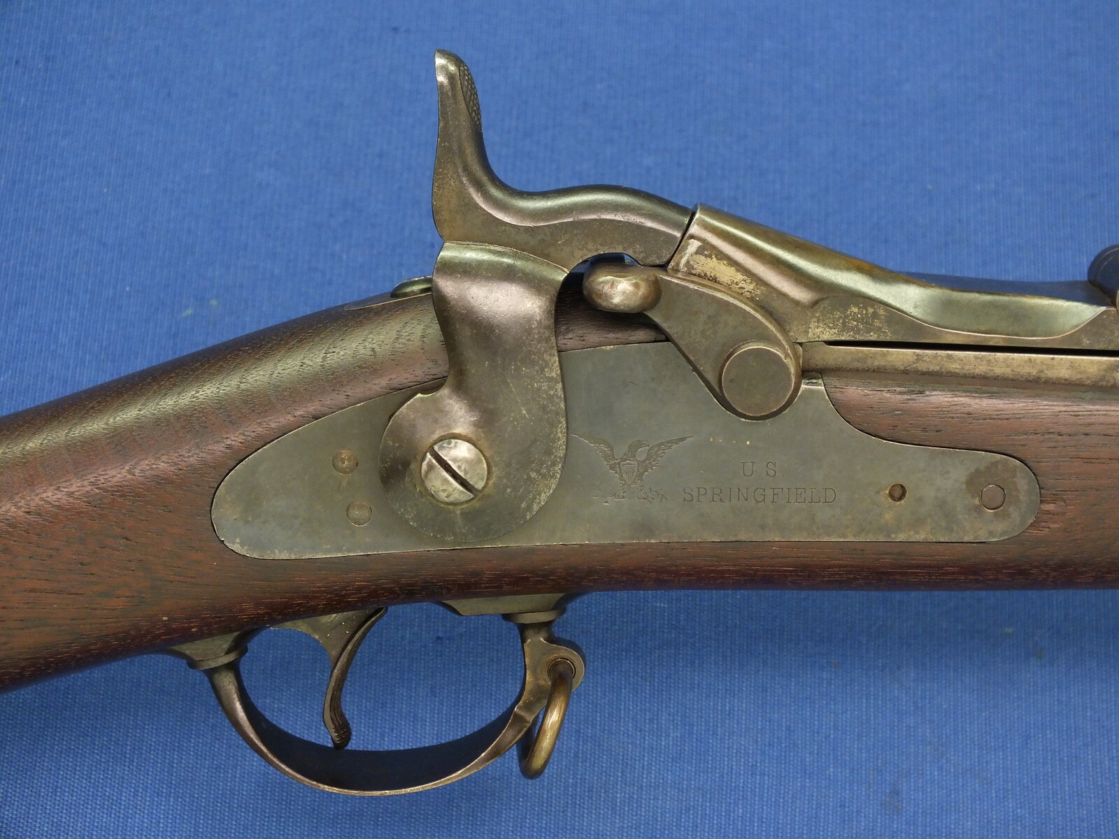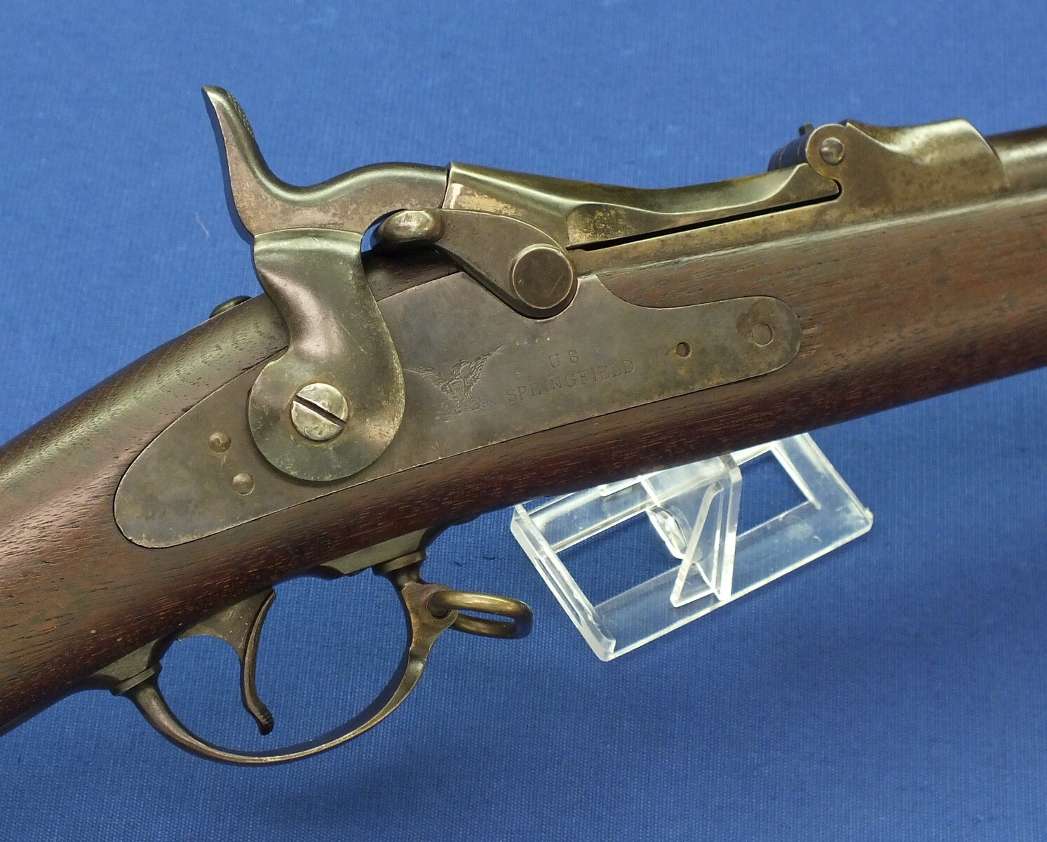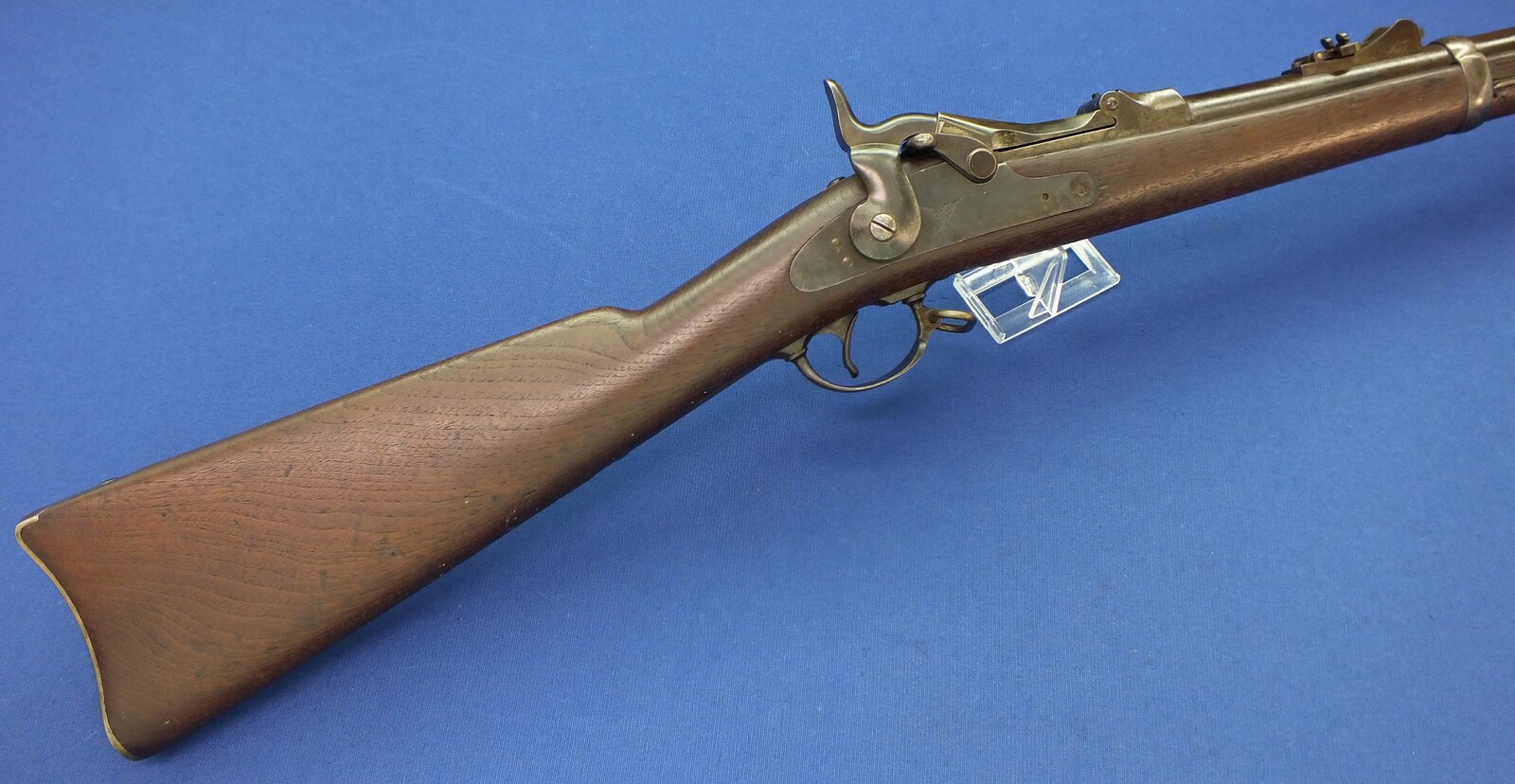 An antique American U.S. Springfield Model 1879 Trapdoor Rifle. Caliber 45-70. 32 5/8 inch barrel. Length 132cm. In very good condition.
