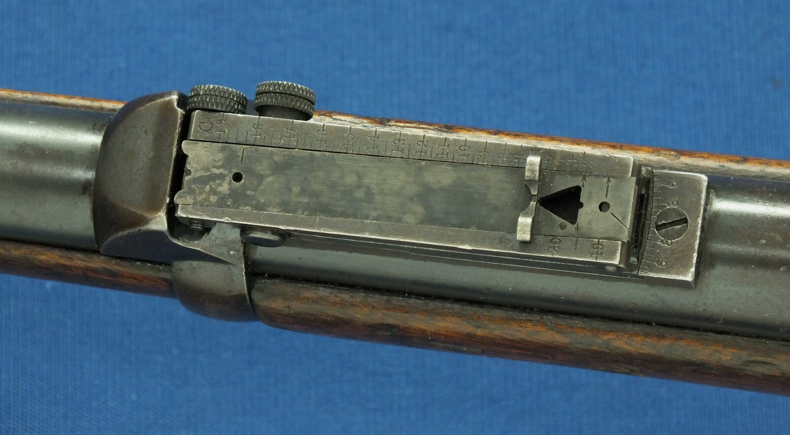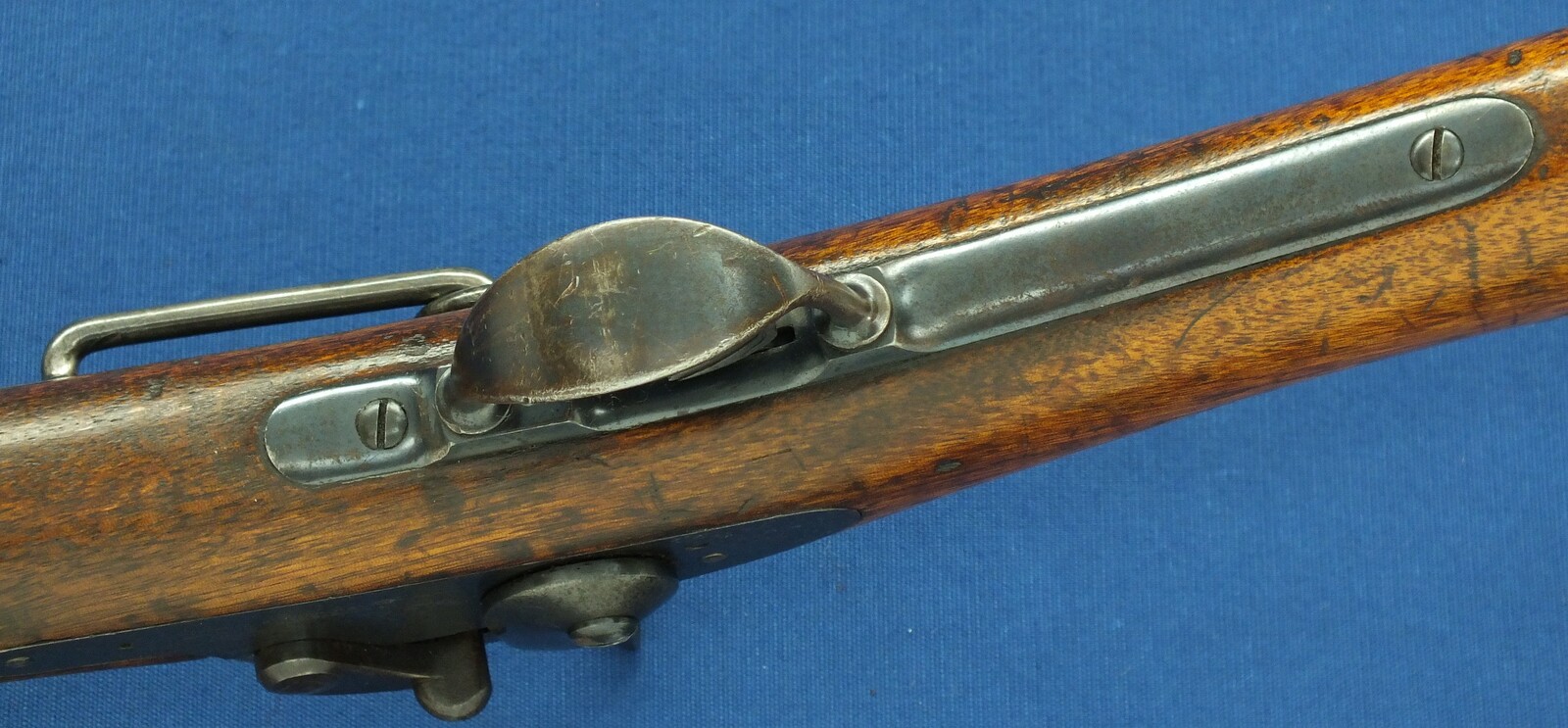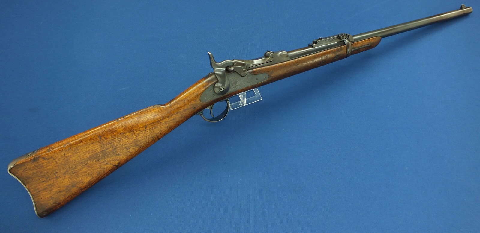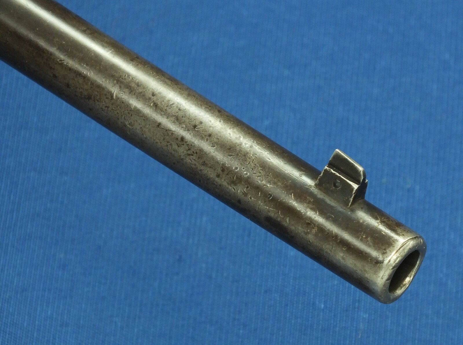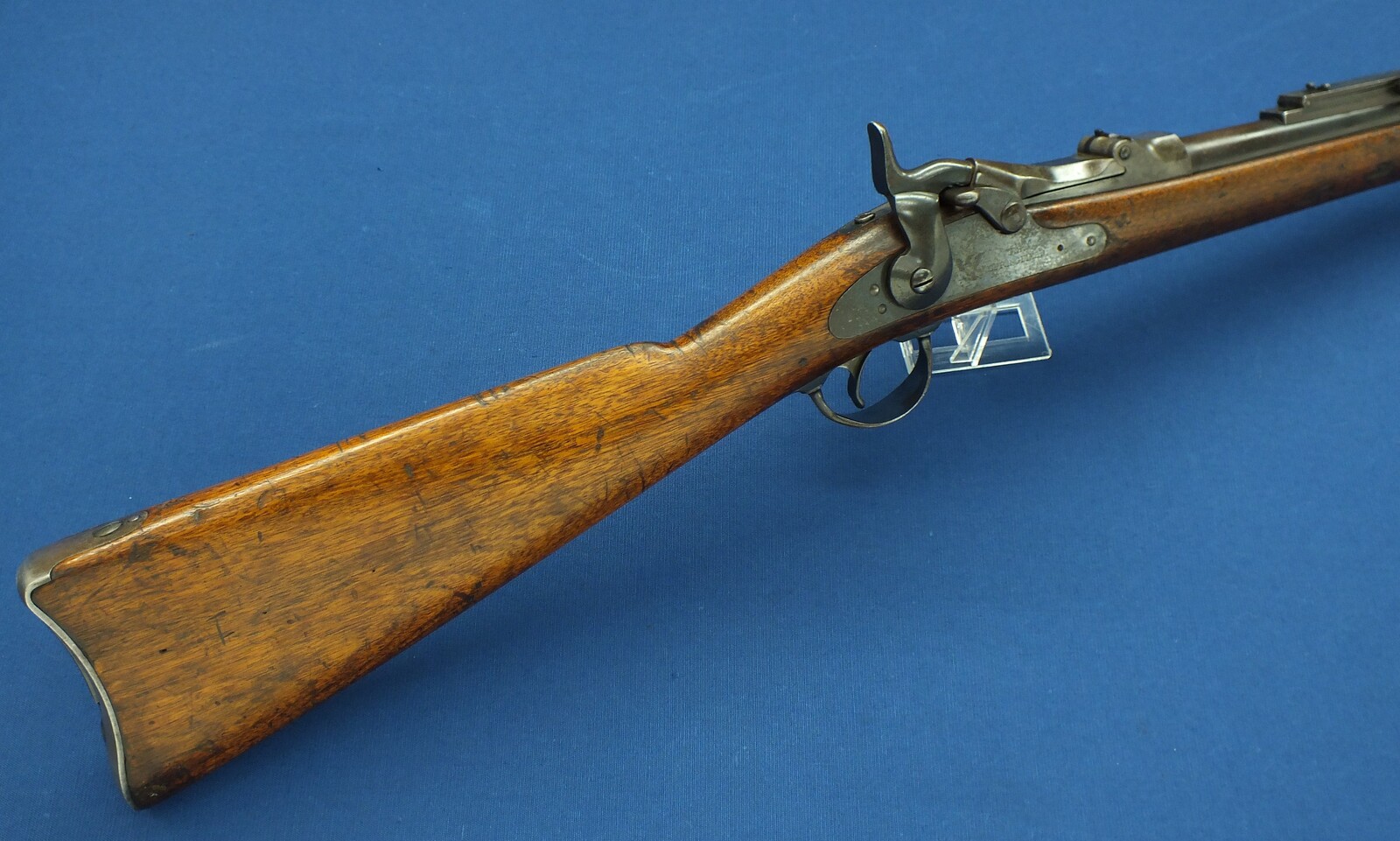SN449112. A lott of original blue finish present. With government alternation of Front Sight cover and special protector barrel band