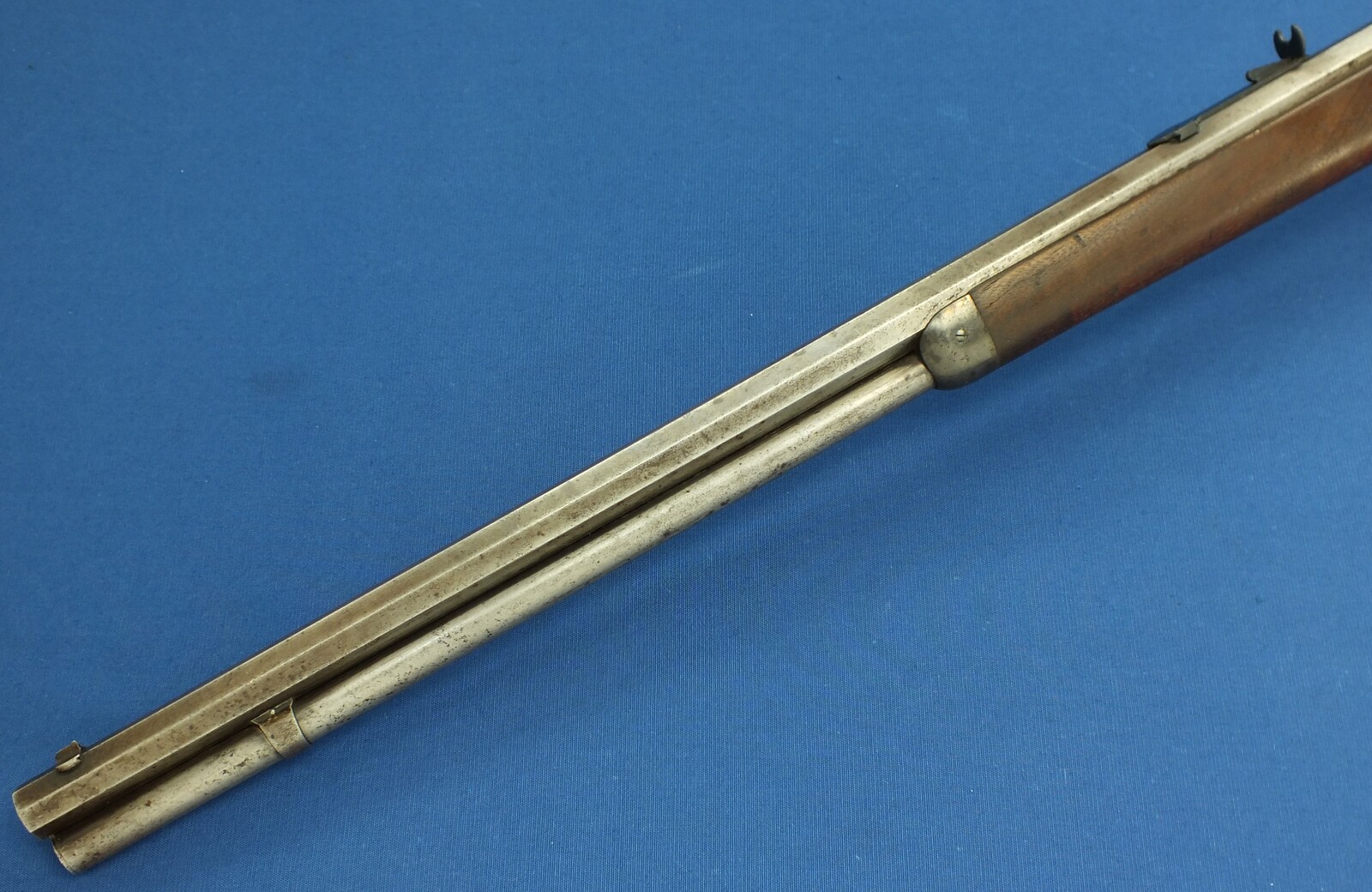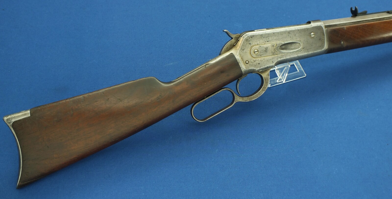 An antique American Winchester Model 1886 lever action Rifle. Caliber 38-56 W.C.F. 26 inch octagon barrel. Lenght 115cm. In very good condition. Price 3.350 euro.