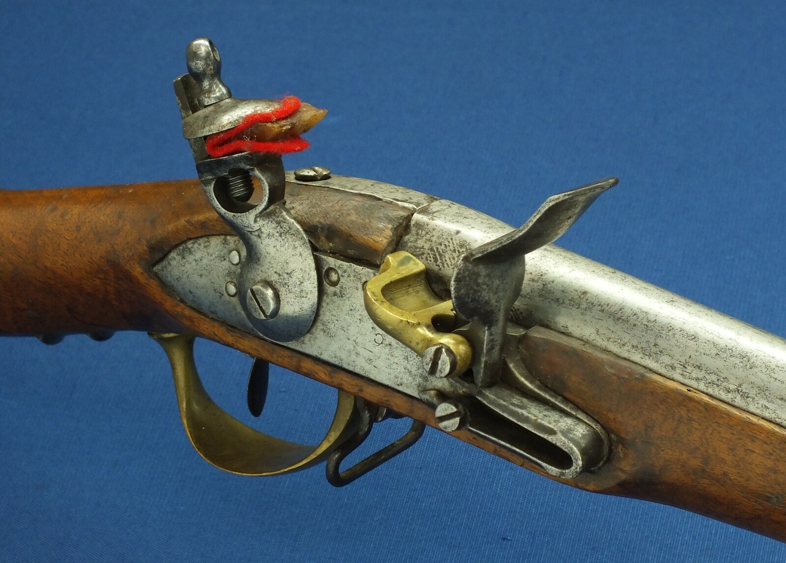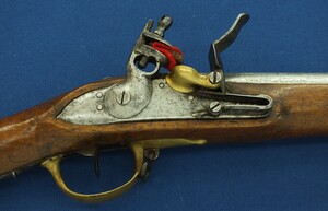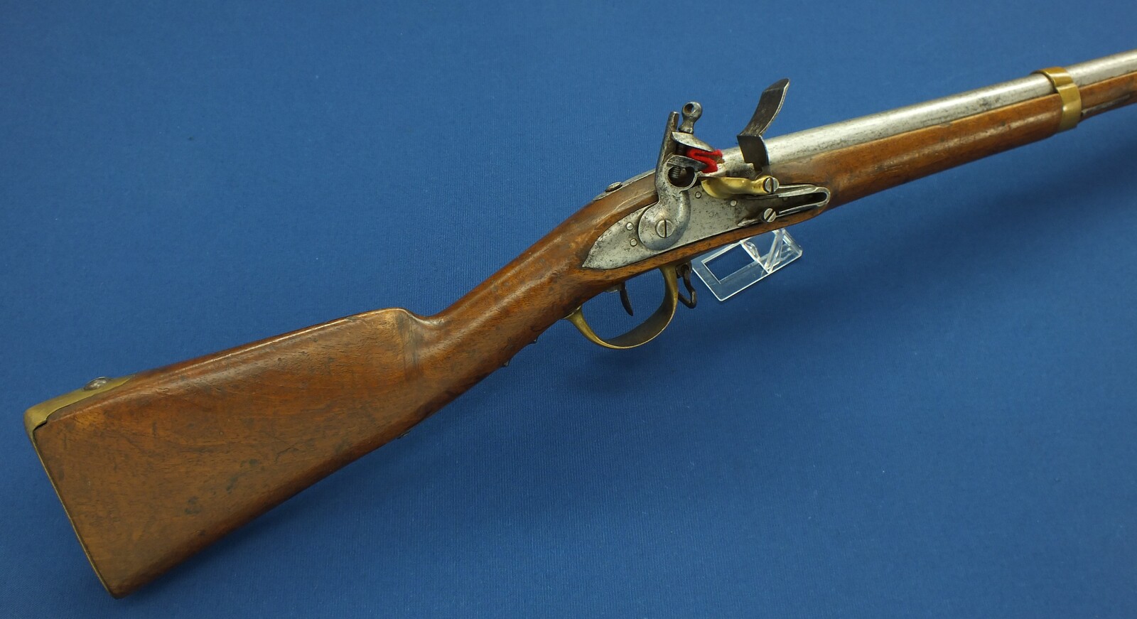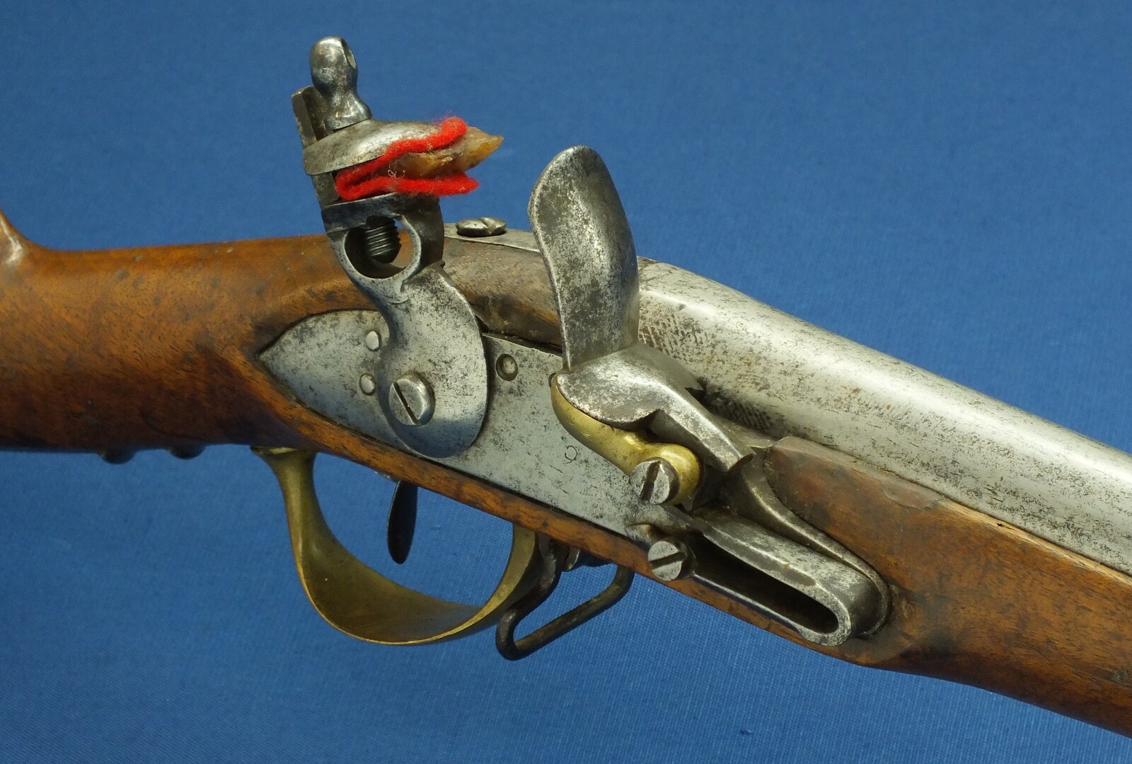 A rare antique French Revolution era model 1777 Flintlock Musket. Caliber 18mm, length 142cm. In very good condition. Price 2.995 euro.