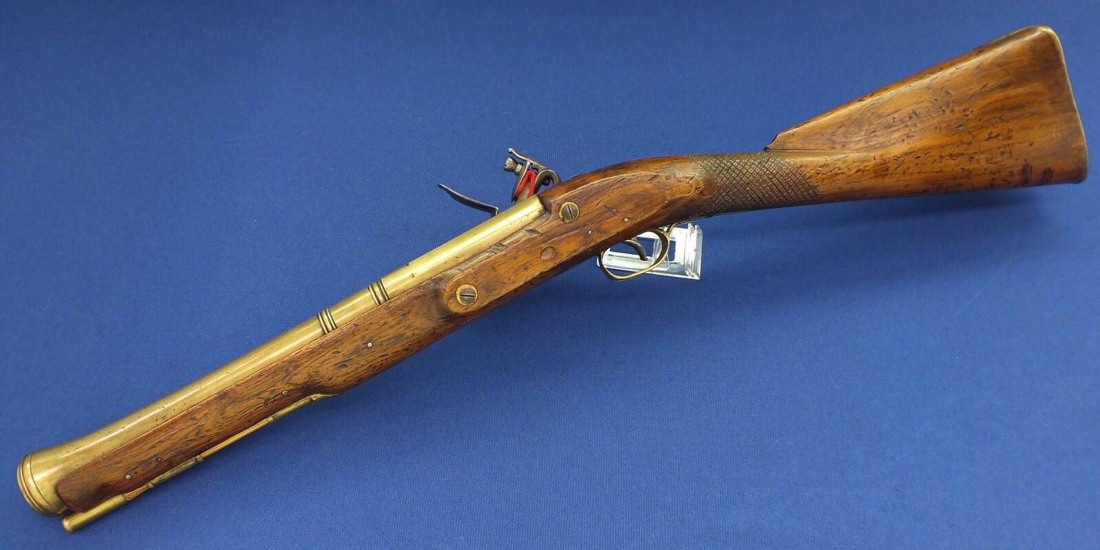 A very nice antique 19th century English Brass Barreled Flintlock Blunderbuss. Signed on barrel YORK. Length 74,5 cm, caliber/muzzle 33mm. In very good condition. Price 2.950 euro
