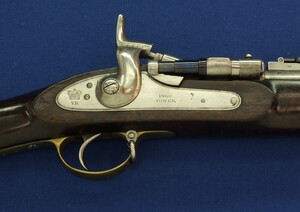 An antique British Enfield Snider Patent breech loading Rifle with Jaipur Armoury Mark. Caliber .577. Length 137cm. In very good condition.