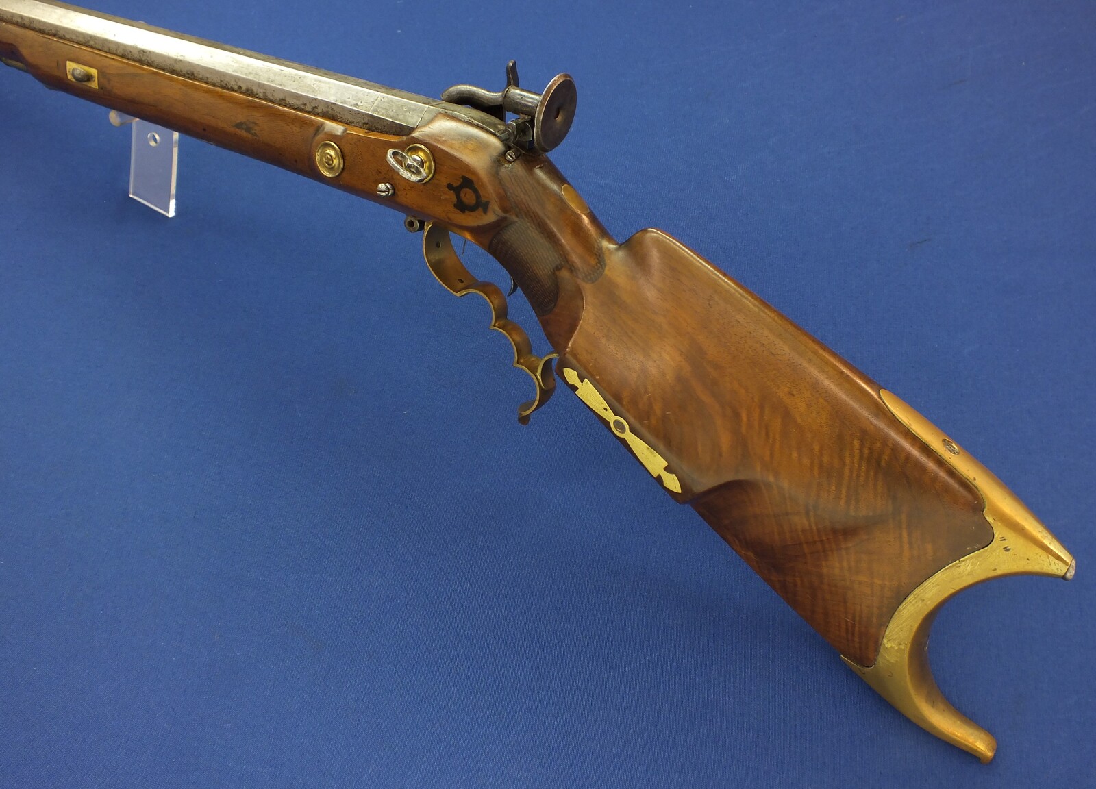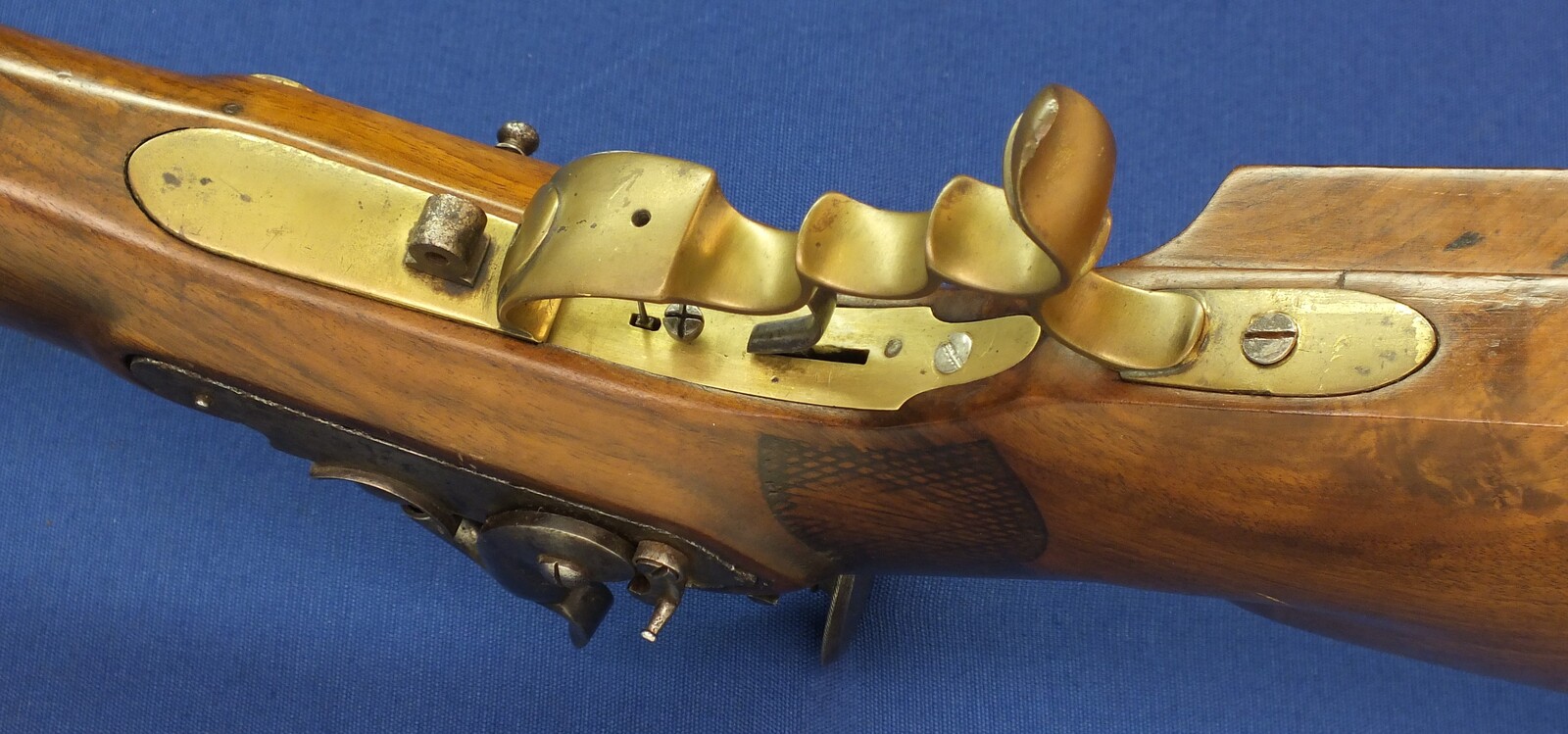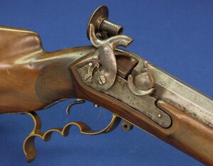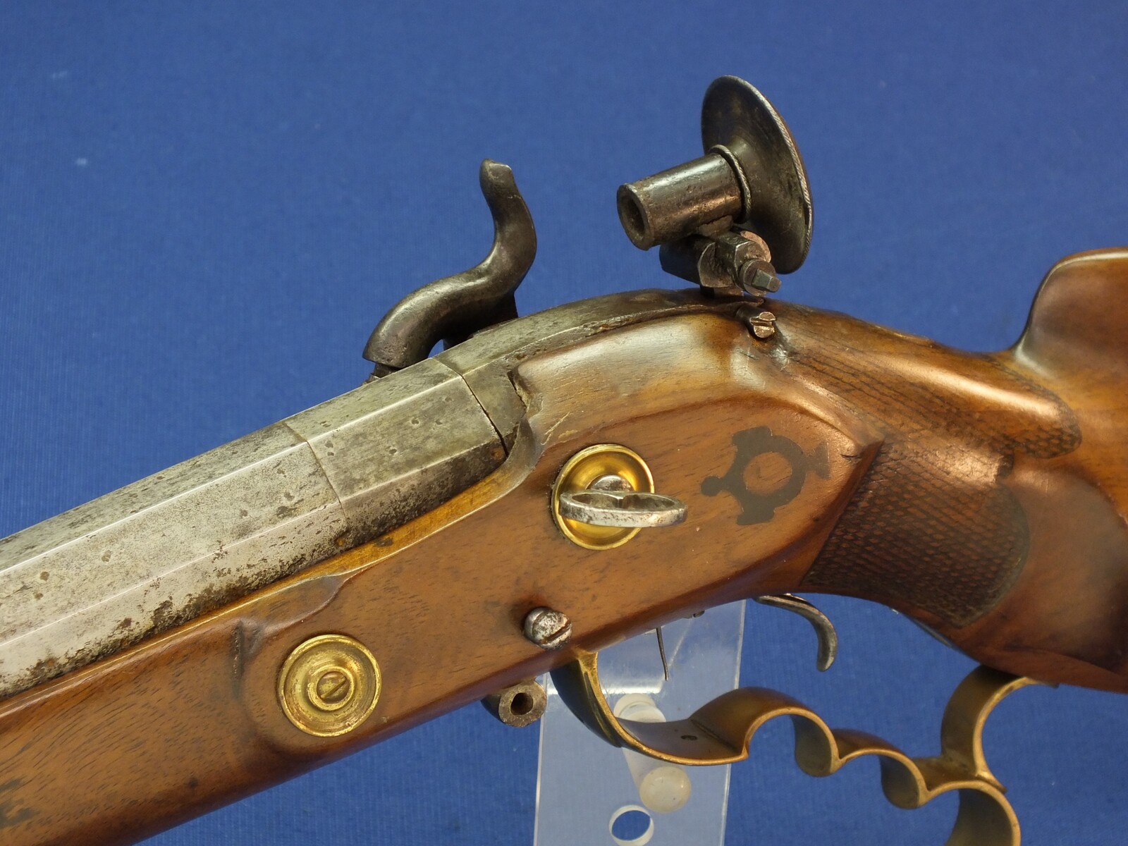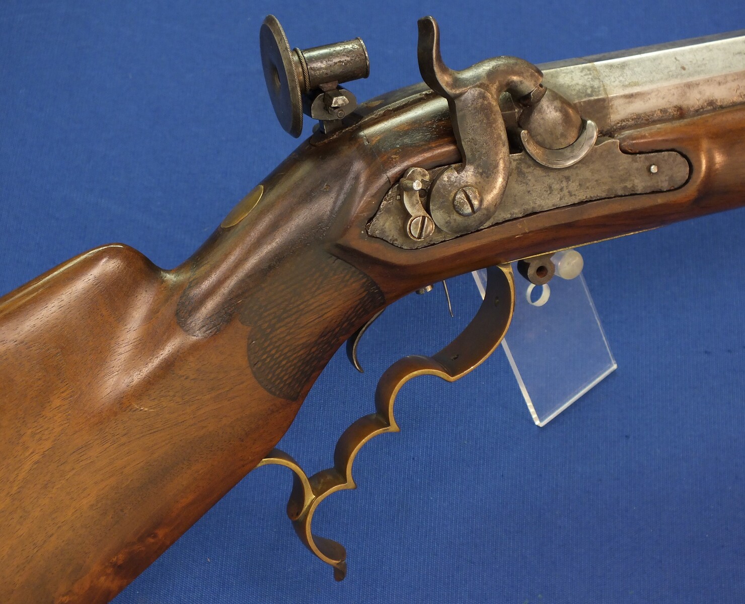 Set-triggers, Fine walnut stock with Brass mounts. Signature on barrel unclear.. Oberstdorf or Oberndorf? Weight 9 kg.