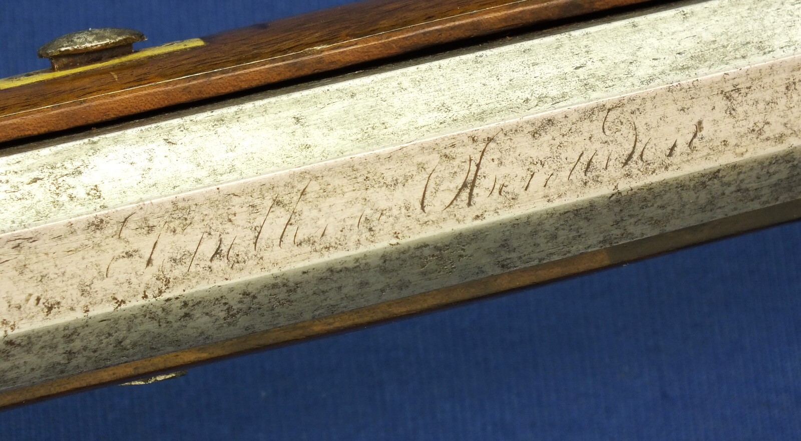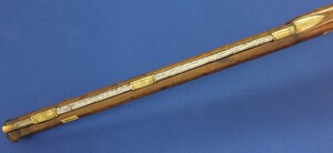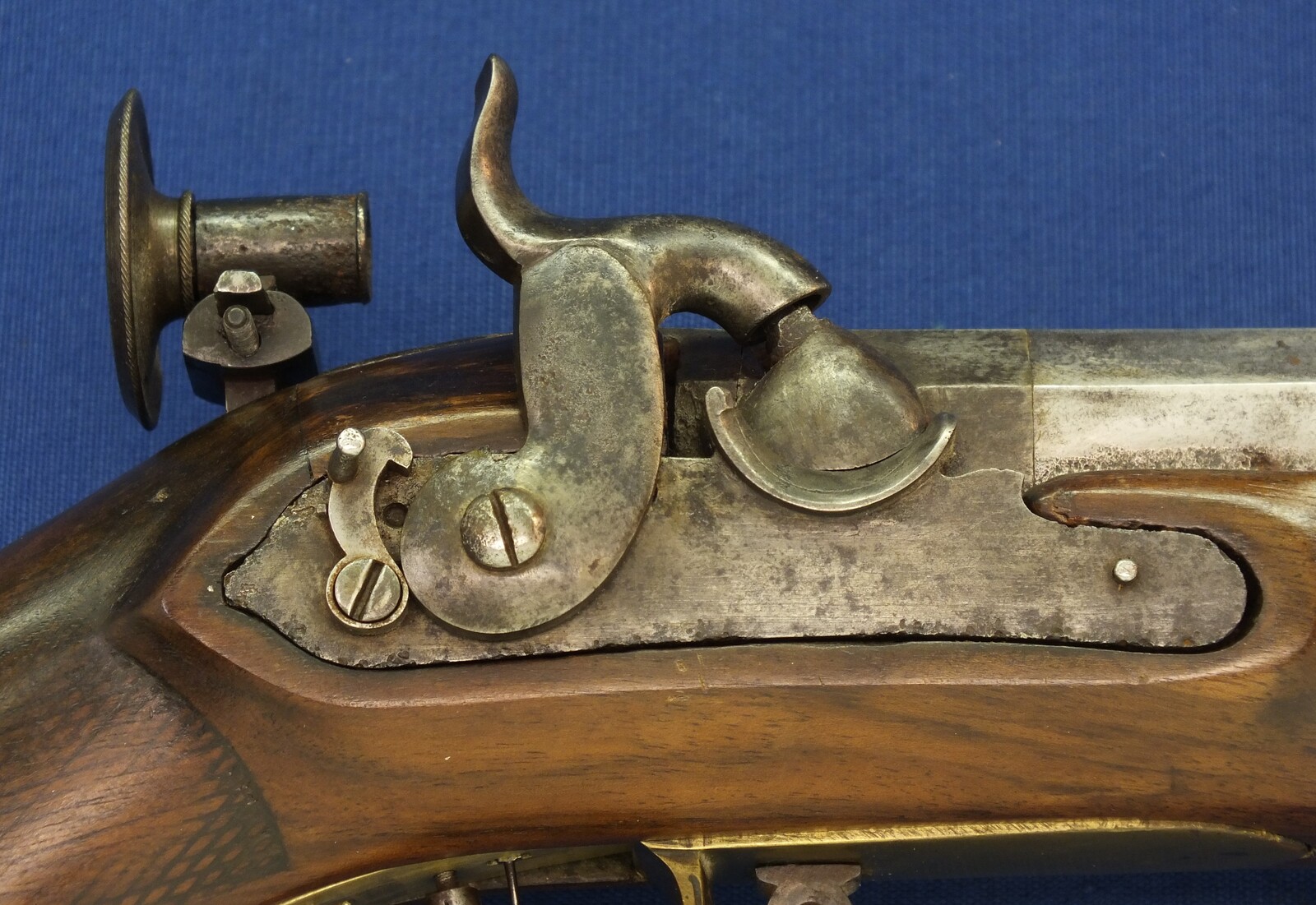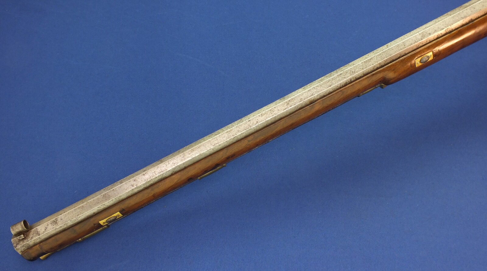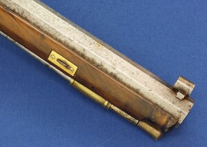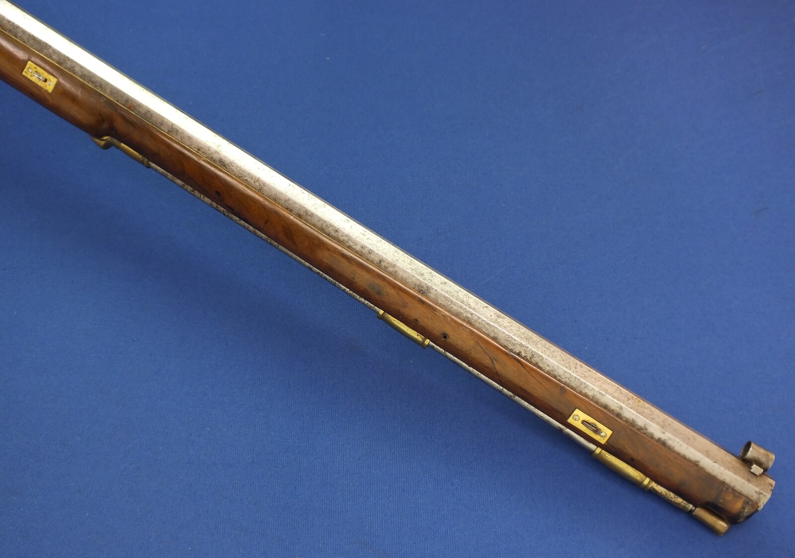 Set-triggers, Fine walnut stock with Brass mounts. Signature on barrel unclear.. Oberstdorf or Oberndorf? Weight 9 kg.