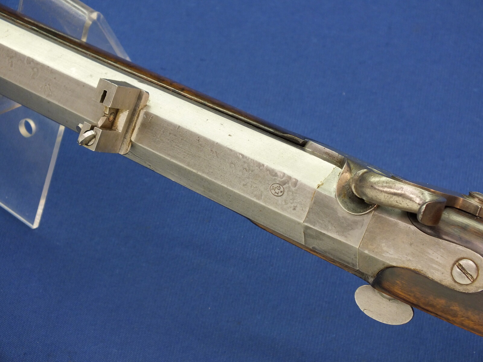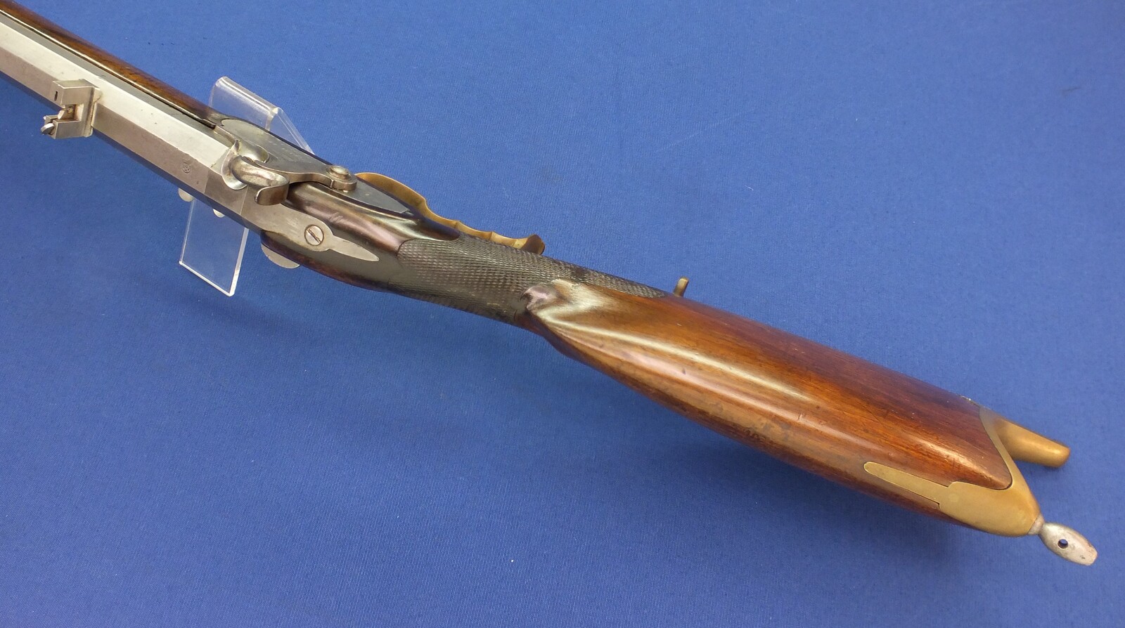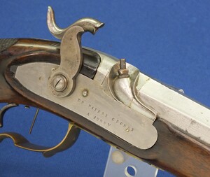 Set triggers. Fine barrel with the Liege ELG proofmark and a bayonet fitting. Fine stock in original finish. Original ram rod.