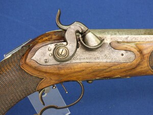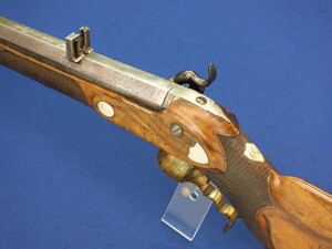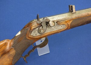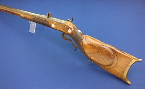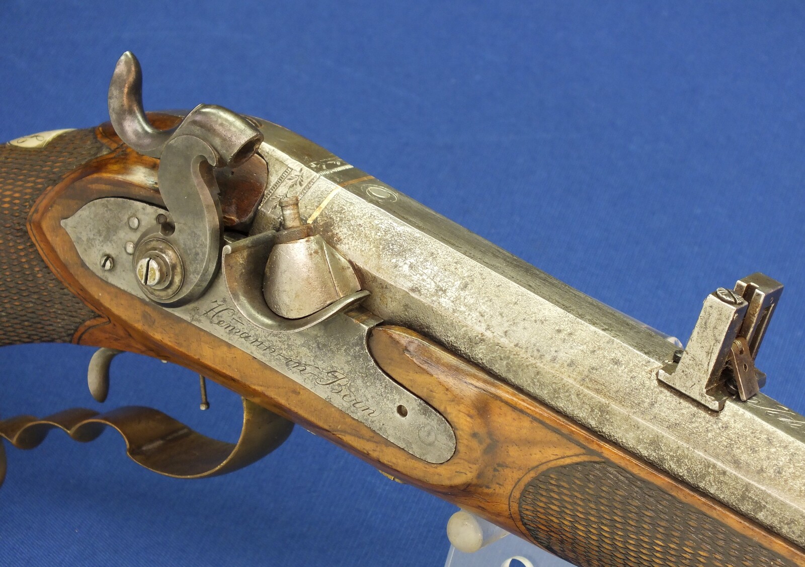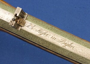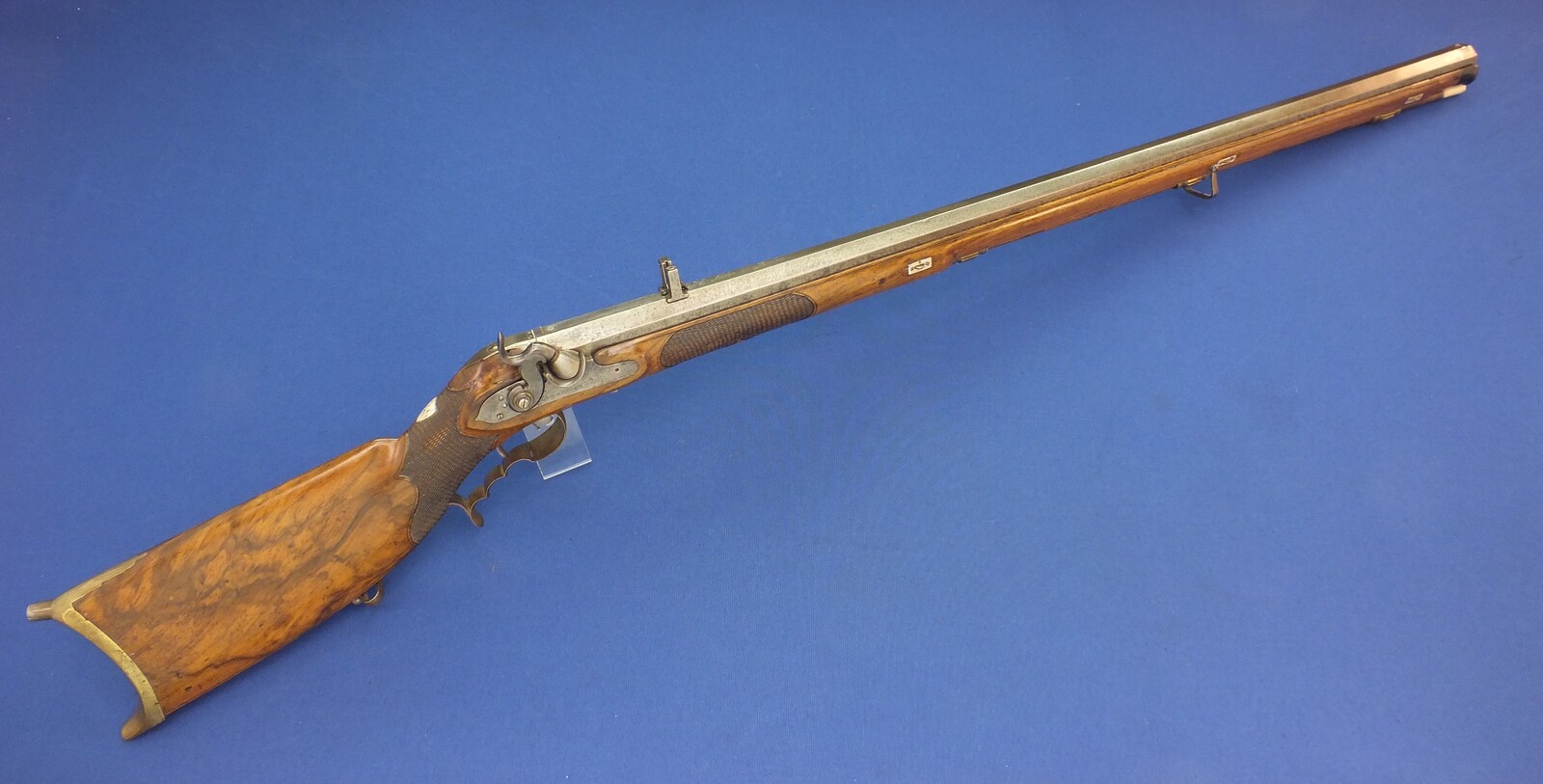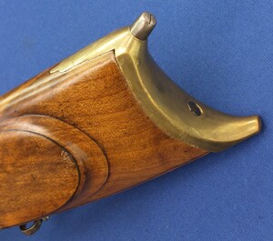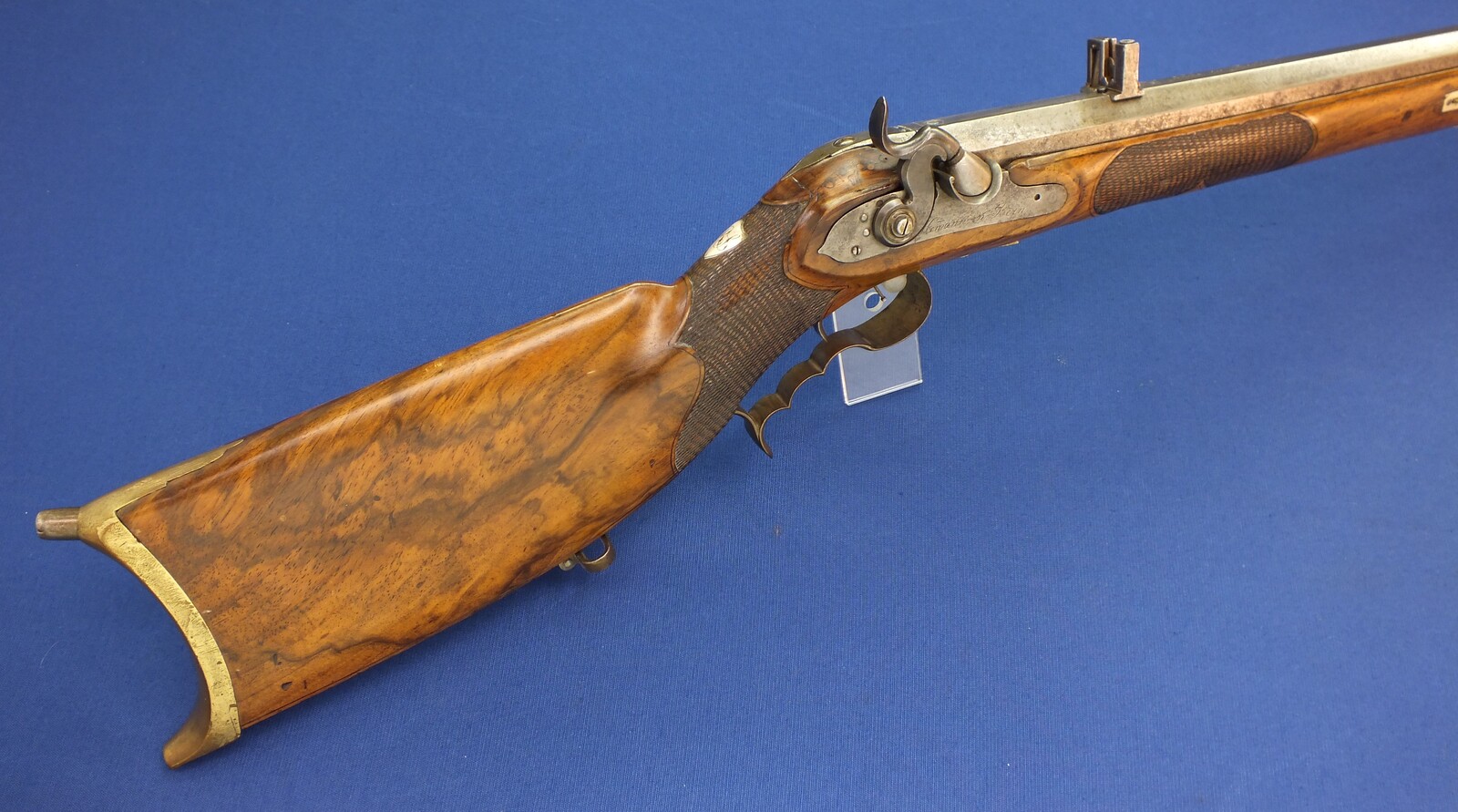 Converted from flintlock. Set-triggers. Silver escutcheon with "RS". Fine brass mounts. Fine stock in original finish.