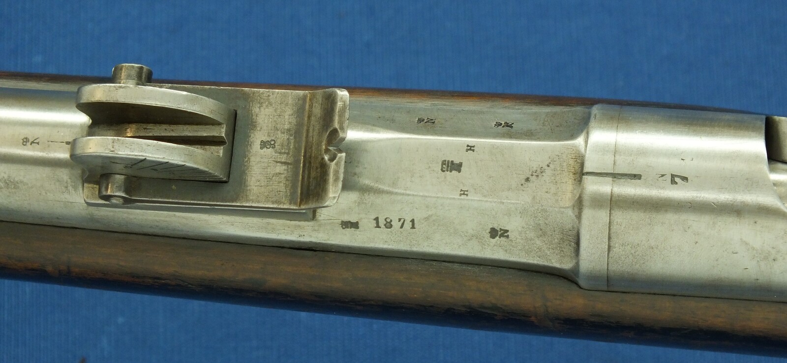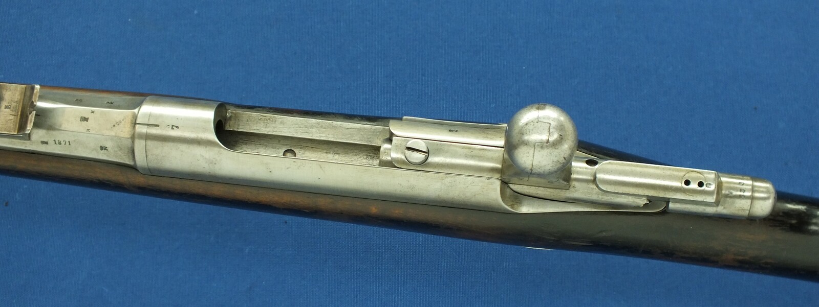 An rare antique Dutch Beuamont Rifle Model 1871. Caliber 11mm. Stock marked KS for Kamerschietoefening. Length 132,5cm. In very good condition.
