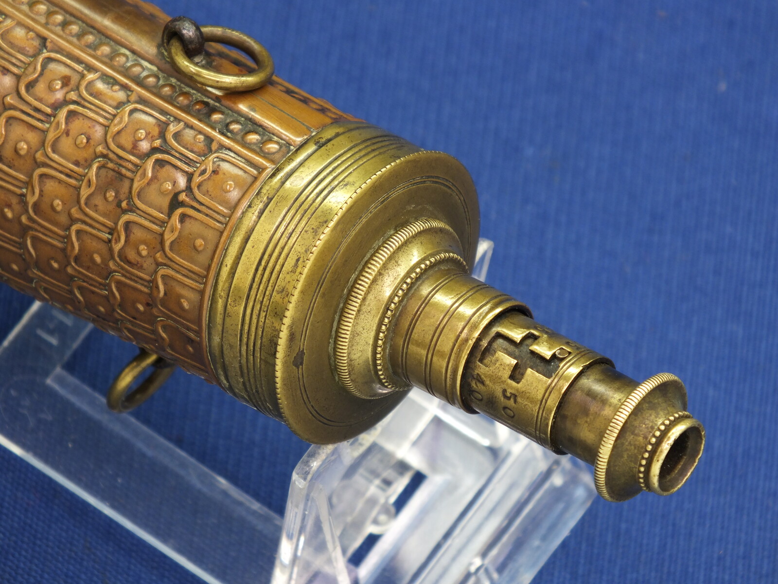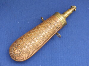 A very fine antique 19th century French Embossed Powder Flask with a pump charger, signed J.N.N. a Paris, height 18,5 cm, in near mint condition. Price 425 euro