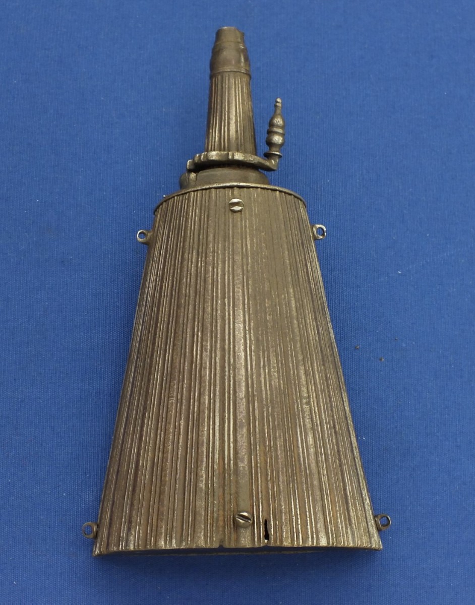 A very nice antique Italian (Brescian) Iron Powder Flask, circa 1600, height 22,5 cm, in very good condition. Price 1.650 euro