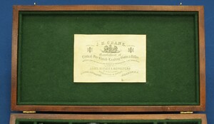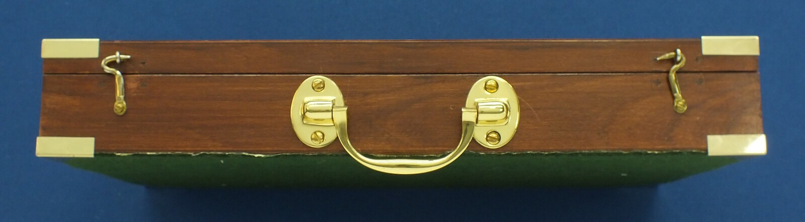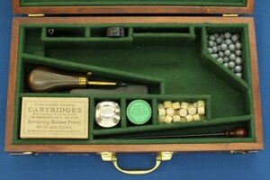 A Vintage Walnut case refitted and relined green interior made to fit Rogers & Spencer Single Action Army Revolver. 39x22x6cm. In very good condition.