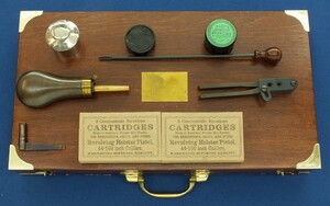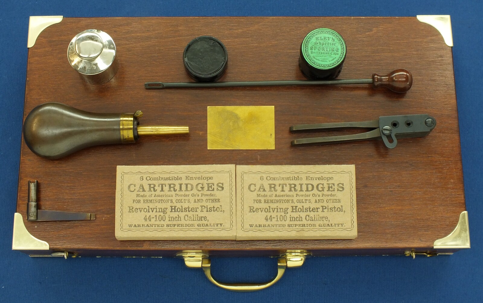 REVOLVER NOT INCLUDED. Reproduction Accoutrements, cartridge boxes are empty.