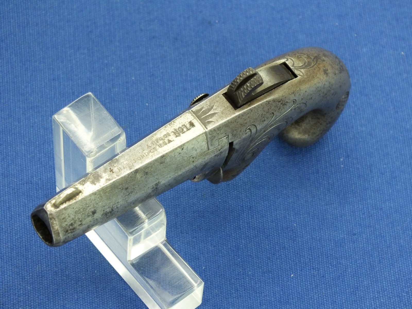 An antique American Colt first model Deringer. Caliber .41 Rimfire, 2,5 inch barrel with Colt Hartford address. In very good condition.