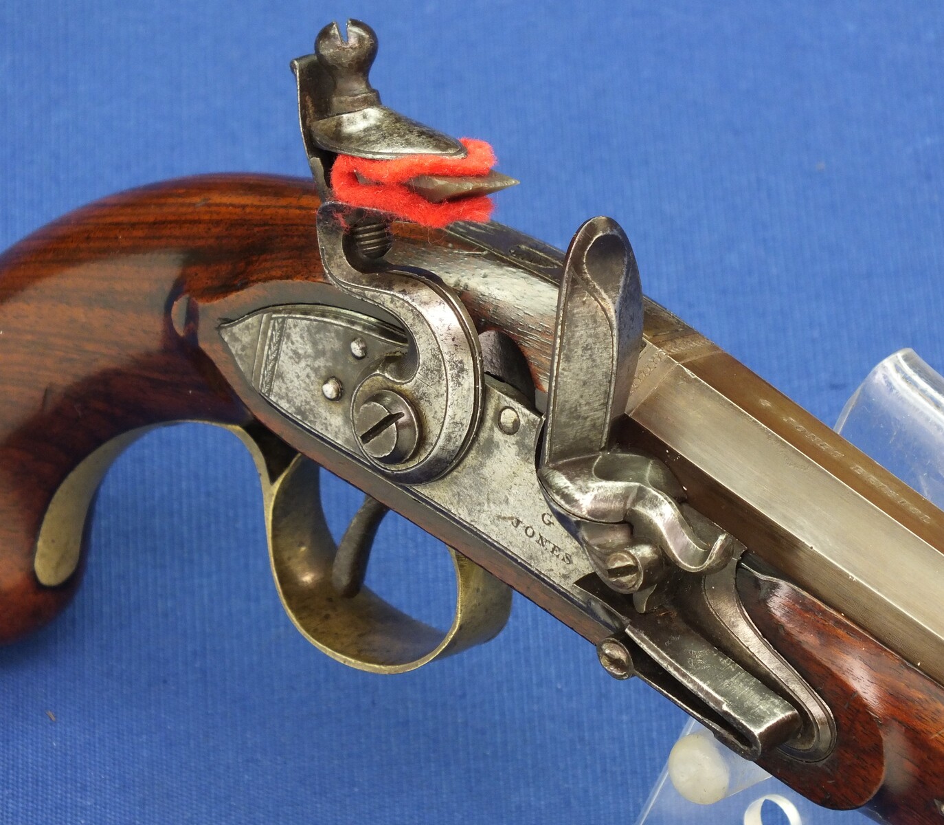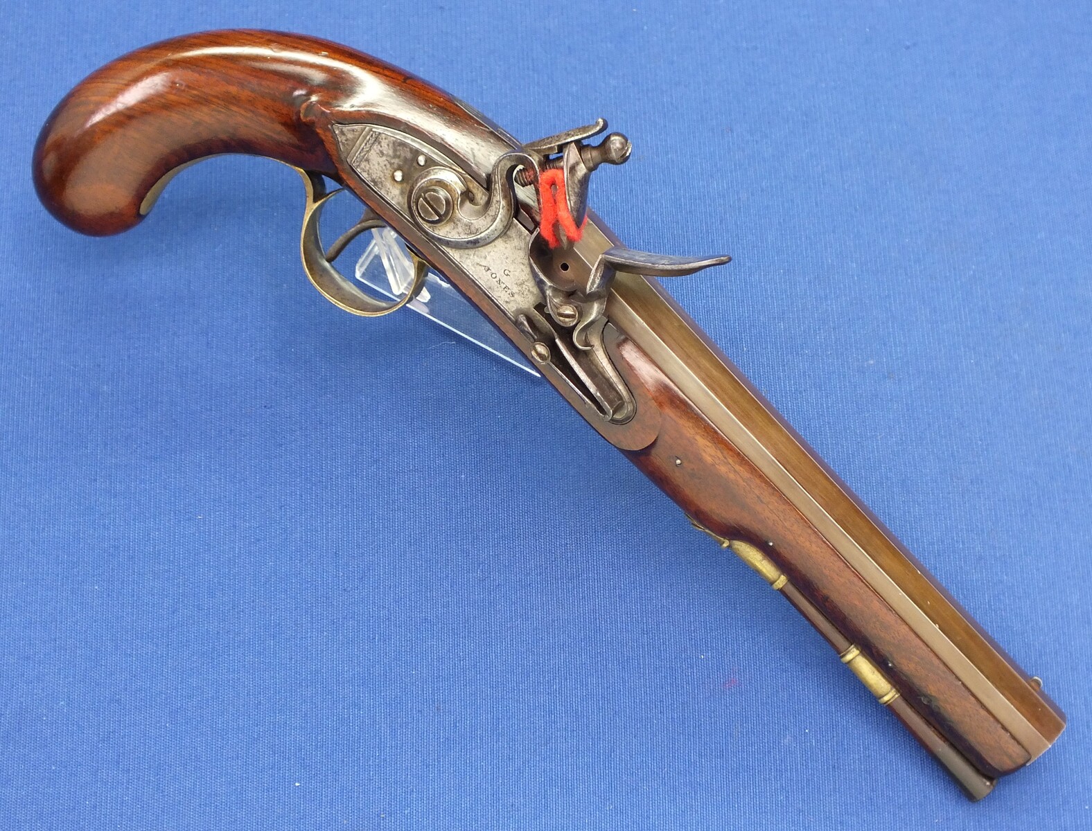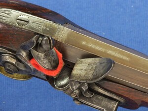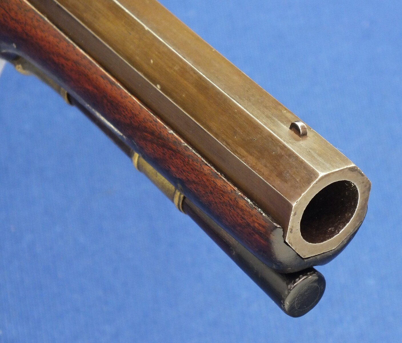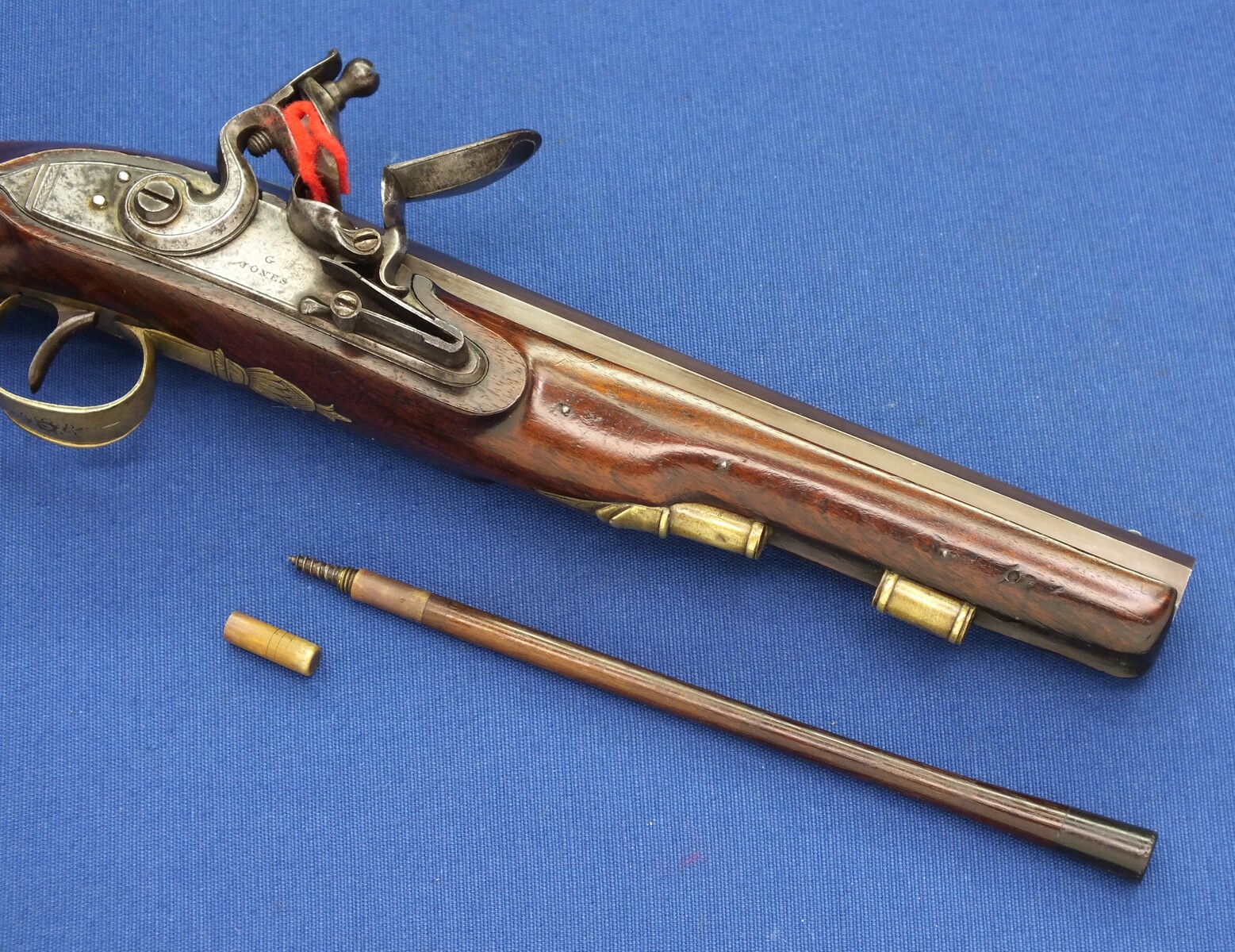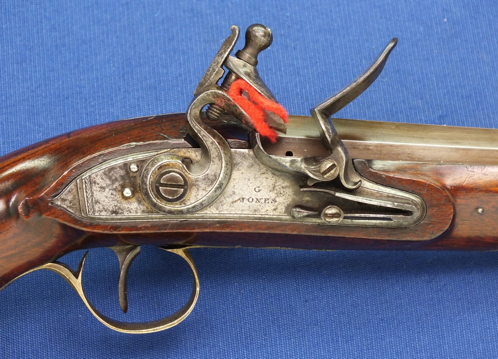 Original brown octogon barrel with the signature G.JONES BRISTOL and Birmingham Proofmarks. Fine engraved lock with G.JONES. Fine engraved brass mounts. Stock in original finish. Original ram rod.