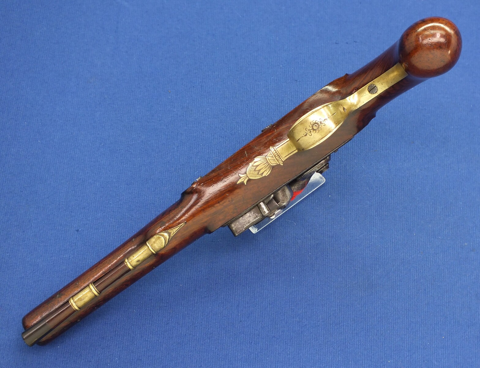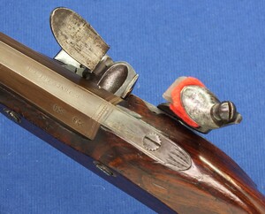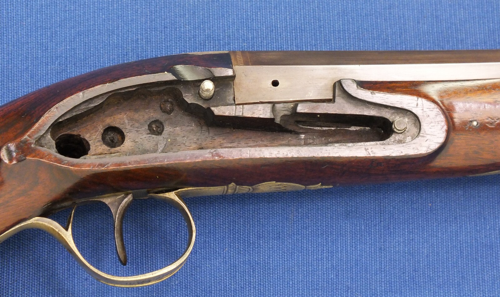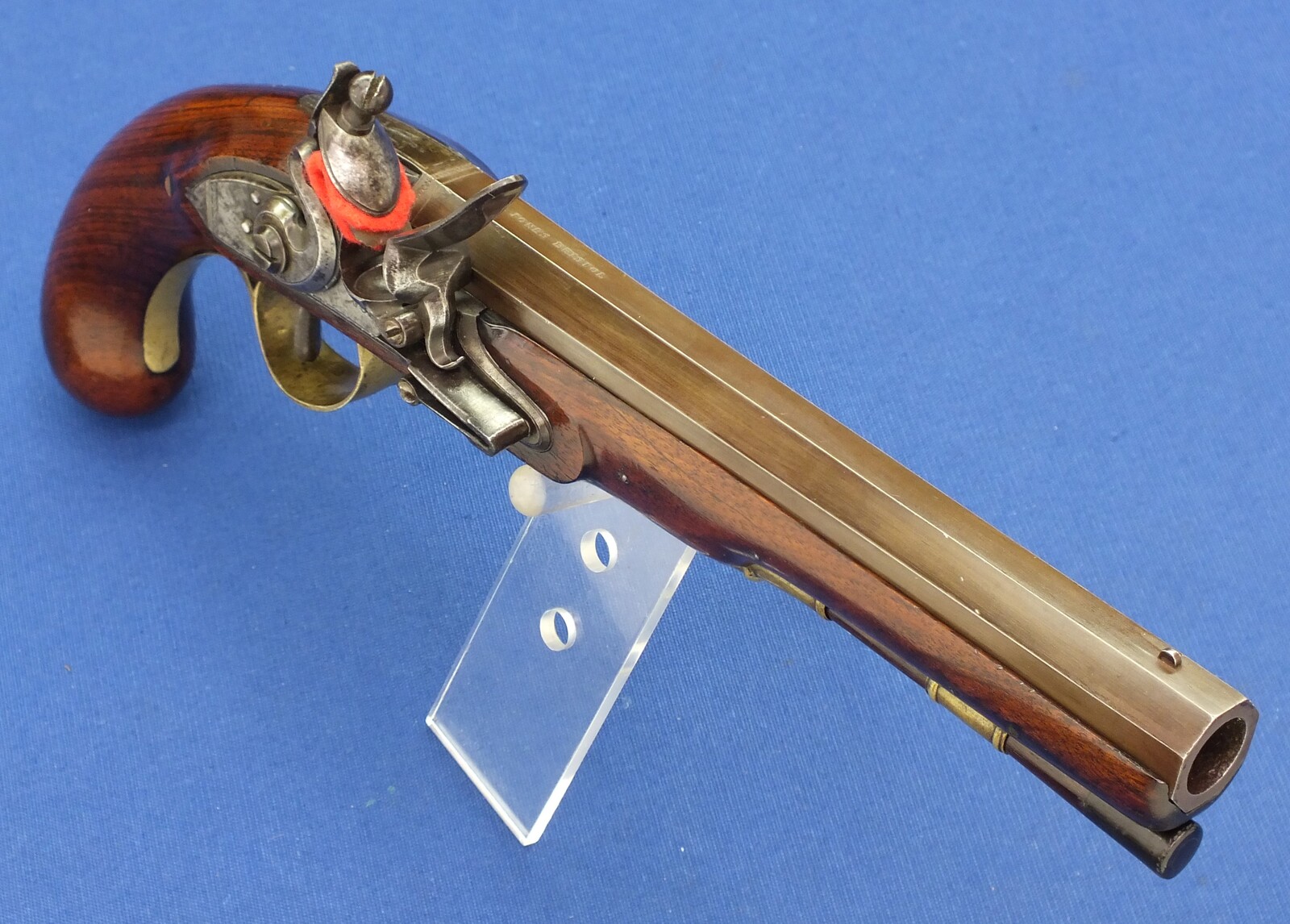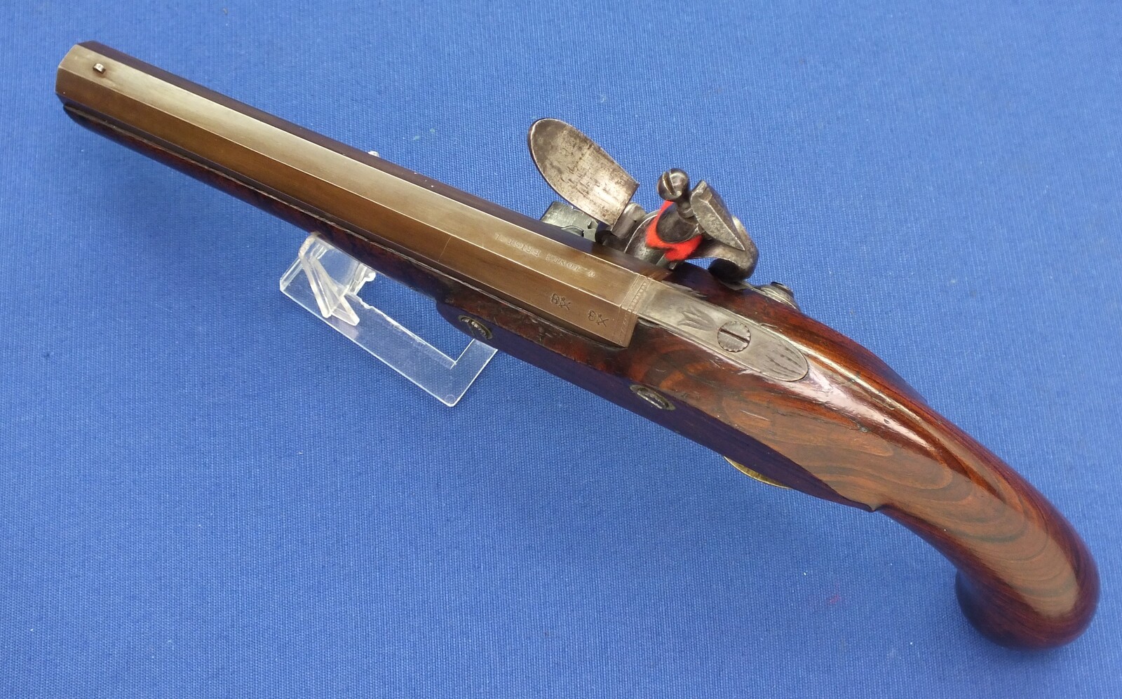 Original brown octogon barrel with the signature G.JONES BRISTOL and Birmingham Proofmarks. Fine engraved lock with G.JONES. Fine engraved brass mounts. Stock in original finish. Original ram rod.