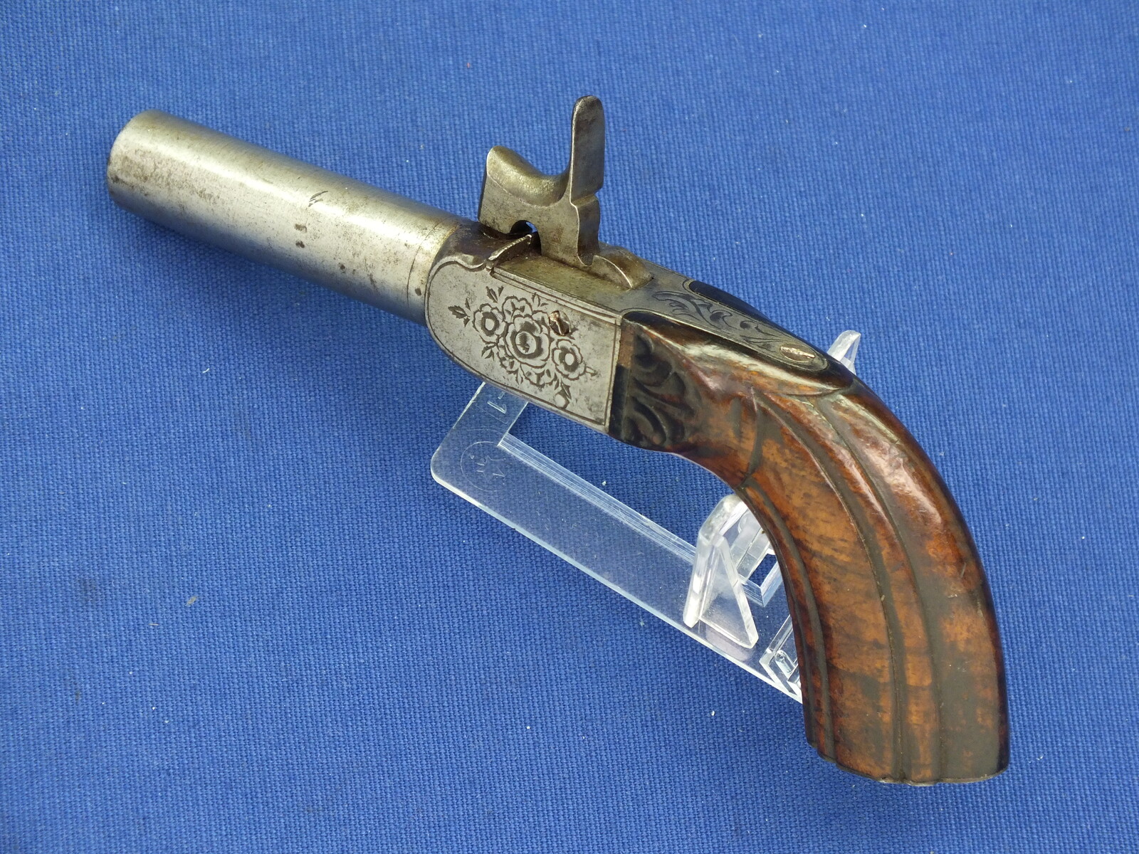 A fine antique 19th century French Percussion Box Lock Pistol, caliber 12 mm, length 17,5 cm, in very good condition. Price 475 euro