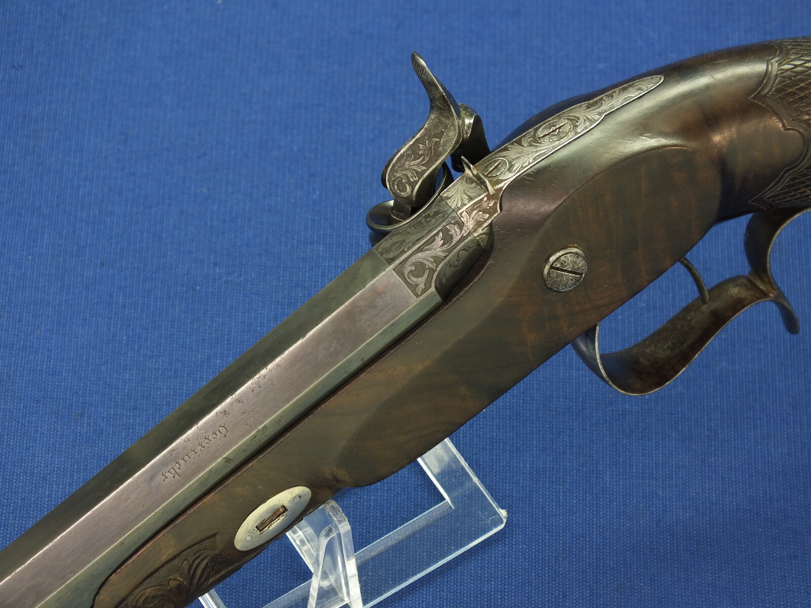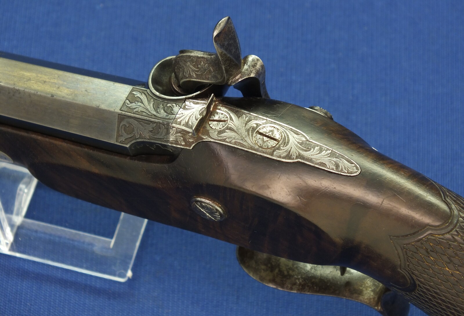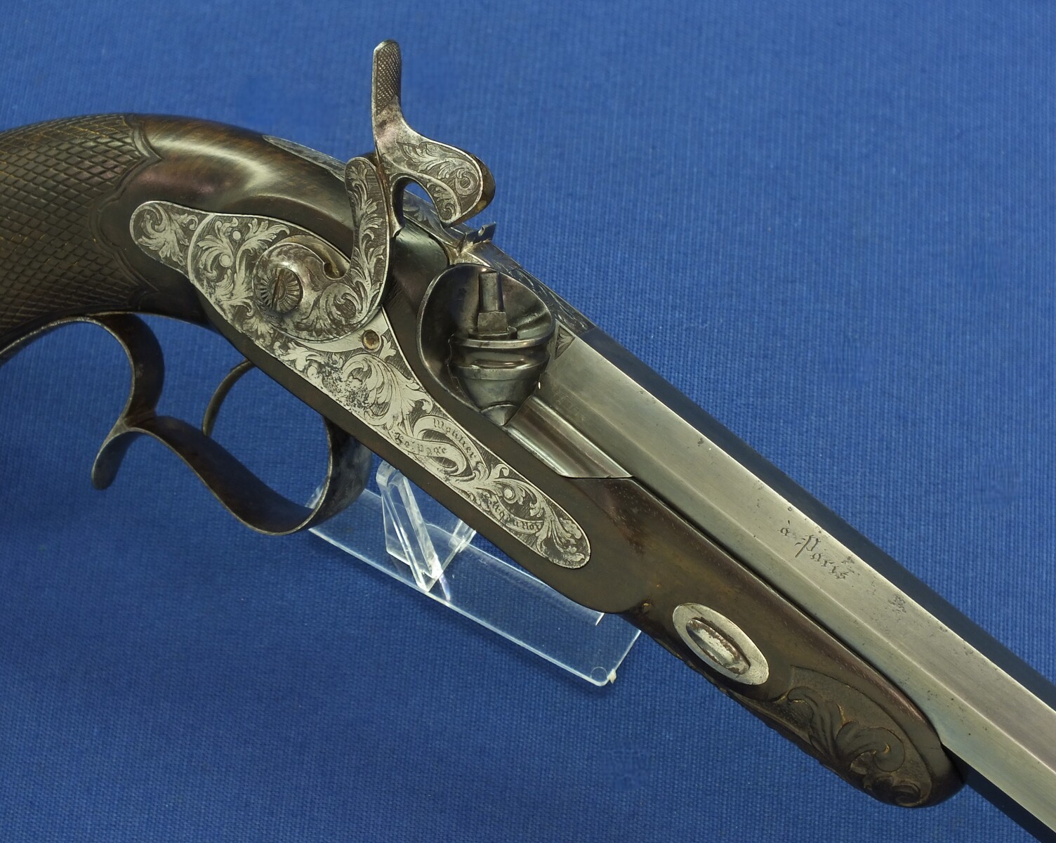 Original leather covered book casing with original accoutrements. Signed in Gold on spine. Fine carved and chequered Walnut stock, Fine chisseled and engraved steel mounts. Barrel signed Geerinckx a Paris, lock Signed: Lepage-Moutier Arquebusier du Roi (Gunmaker for the King/court)