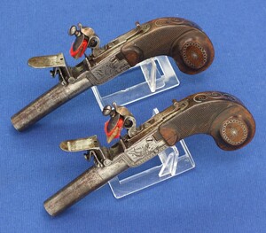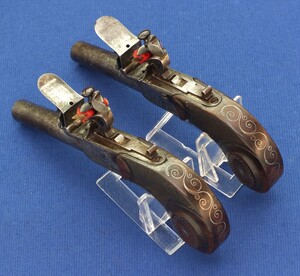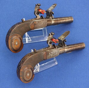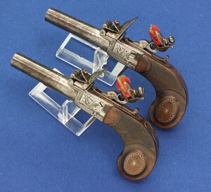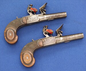 Thumb -piece safety catches. Fine engraved actions. Fine carved and chequered butt's with silver-wire inlay.