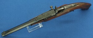 An antique 19th century French Flobert Target Pistol, caliber 6 mm/22 short, length 43 cm, in very good condition. Price 595 euro.