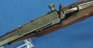 Fine Walnut Stock. Reblued steel parts. Rifled barrel, set-triggers