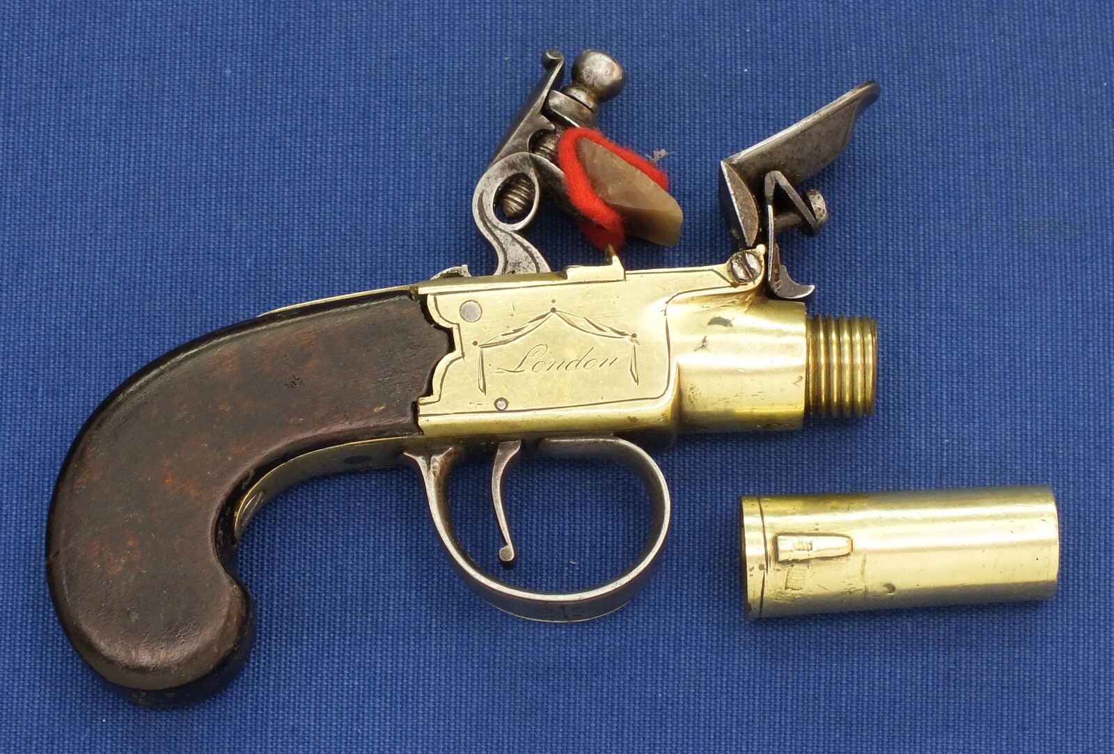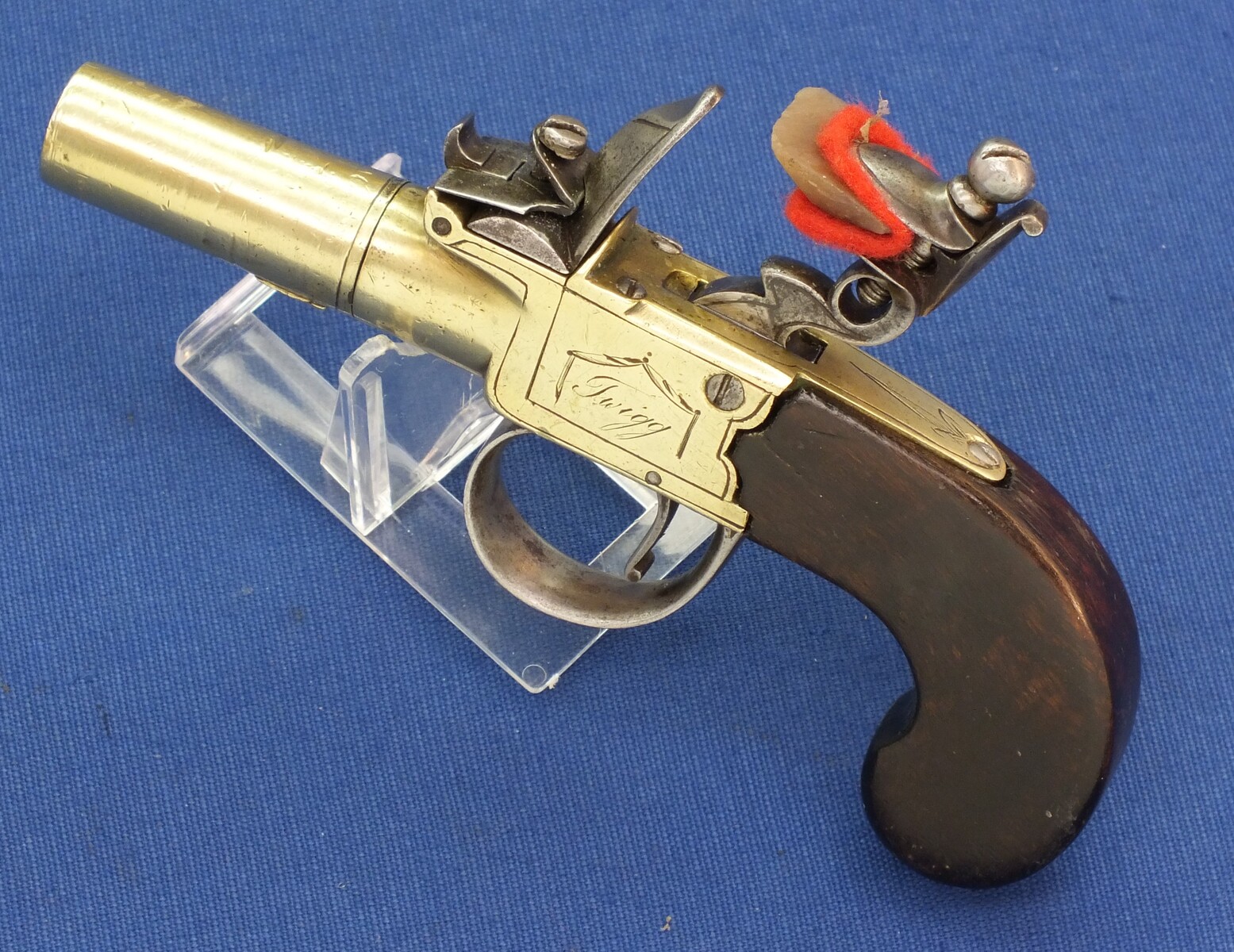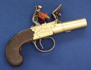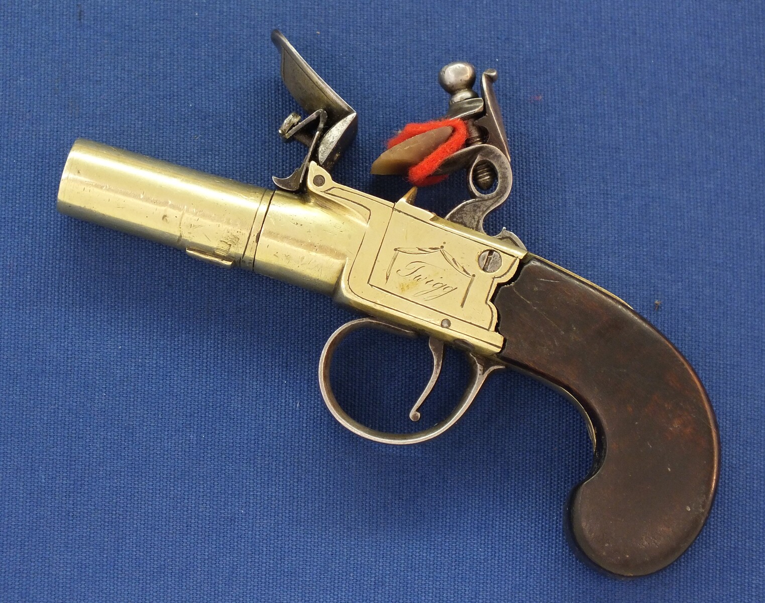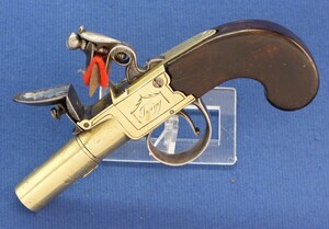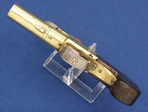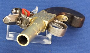 An antique English Brass Flintlock Pocket Pistol signed TWIGG LONDON, (1732-1790), London proofmarks, caliber 12 mm, length 16 cm, in very good condition