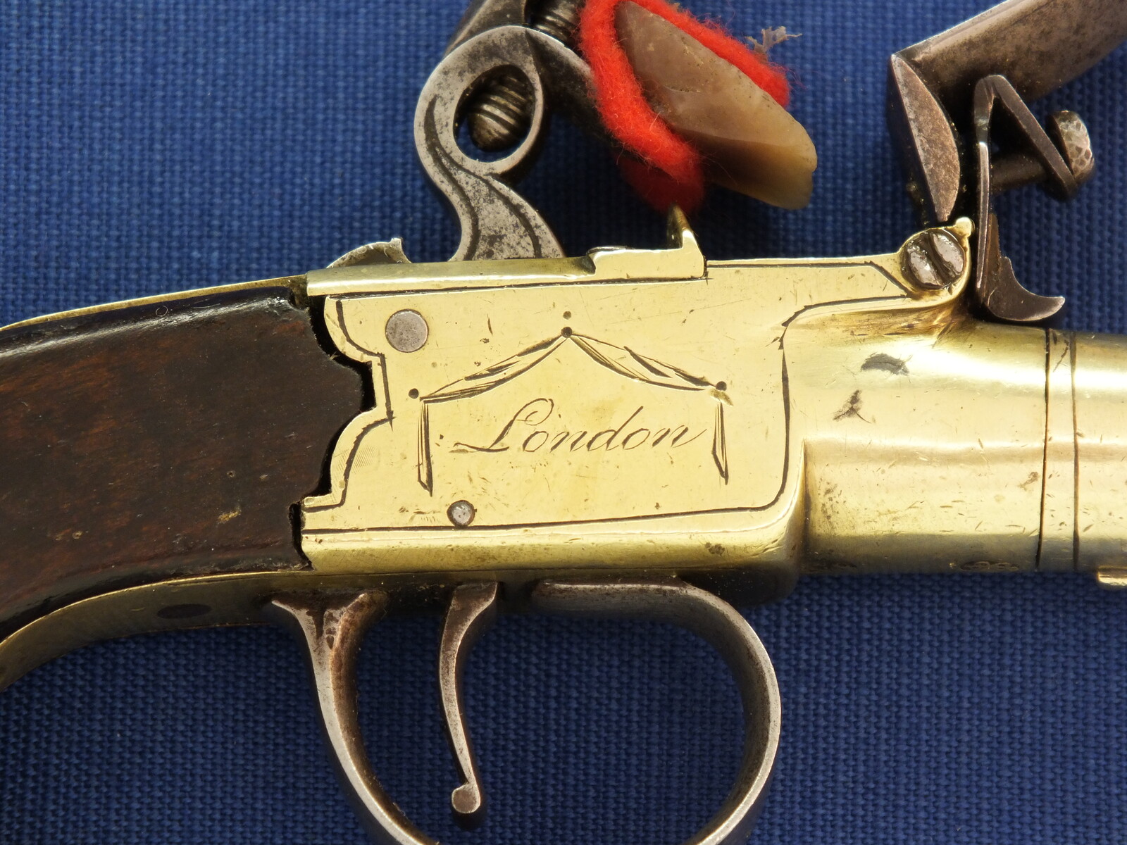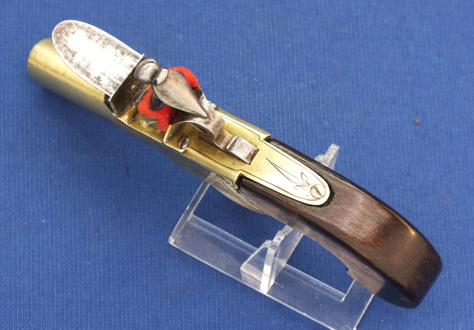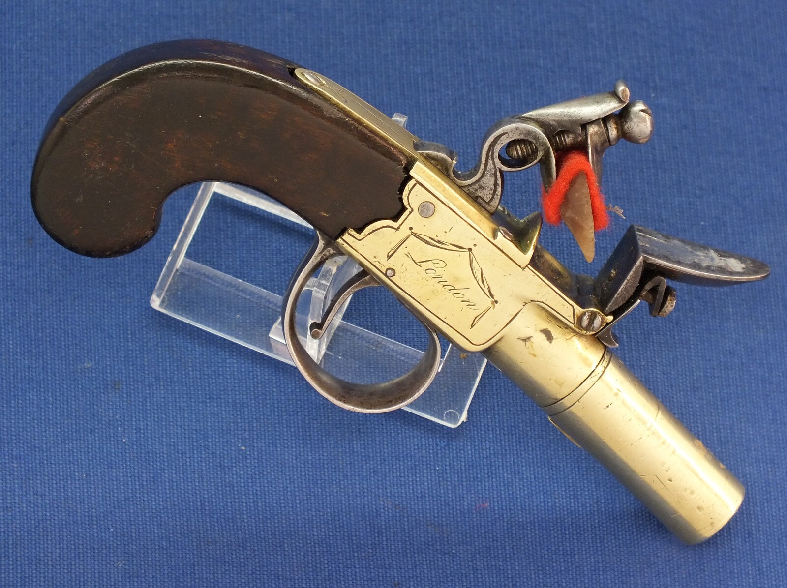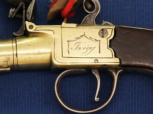 An antique English Brass Flintlock Pocket Pistol signed TWIGG LONDON, (1732-1790), London proofmarks, caliber 12 mm, length 16 cm, in very good condition