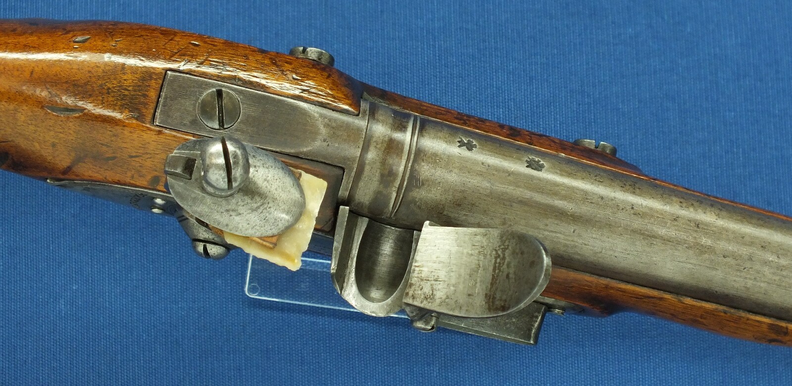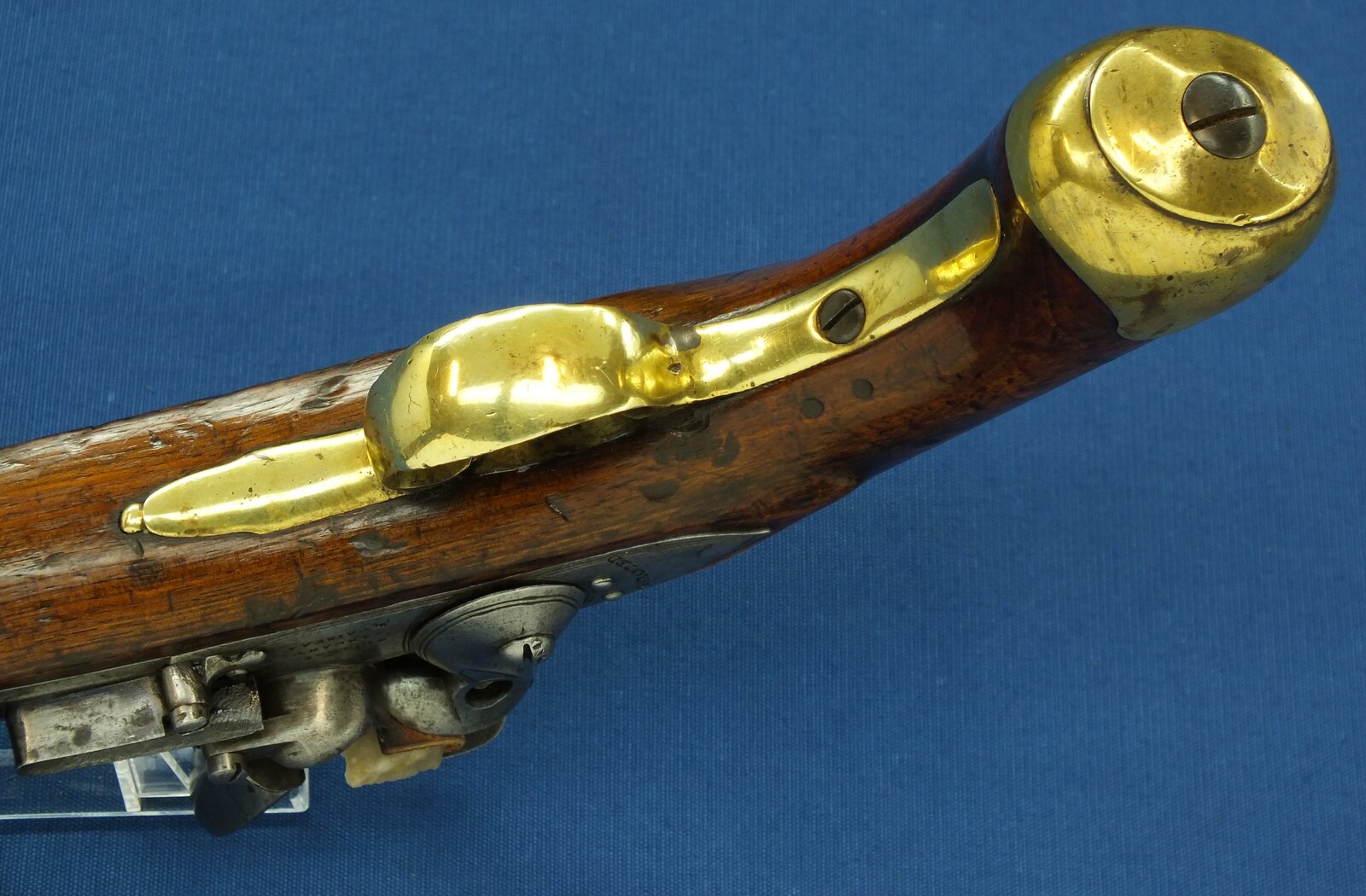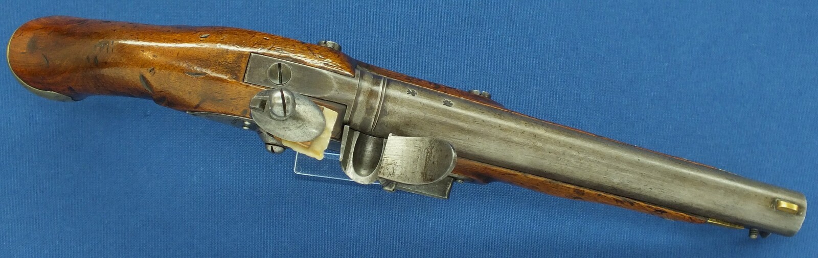 An antique English New Land Pattern Flintlock Pistol by Woolley, Sargant & Fairfax, circa 1800, caliber 16 mm, length 40 cm, in very good condition. Price 1.950 euro