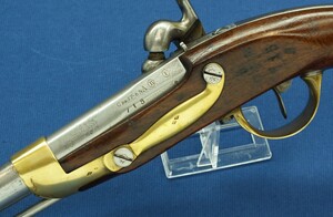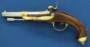 An antique French Cavalry Model 1822 T-Bis Percussion Pistol. Caliber 17,7mm, length 36cm. In very good condition. Price 1.050 euro.