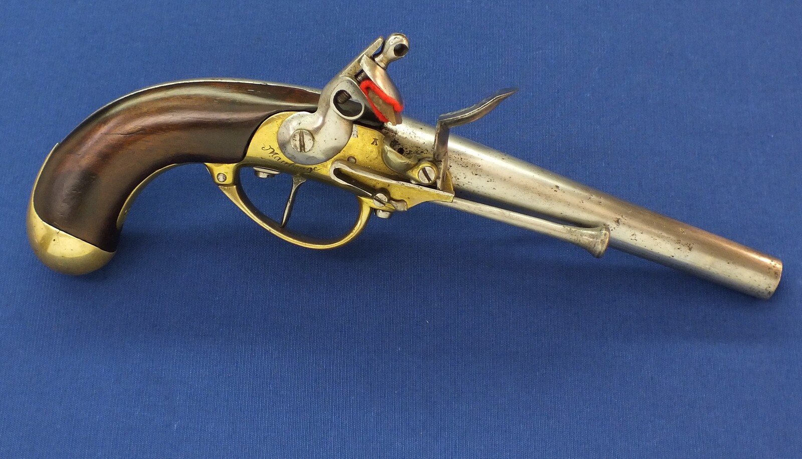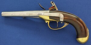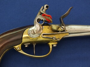 French Model 1777 Flintlock Trooper's Cavalry Pistol. Signed Maubeuge. Caliber 17mm, length 35cm. In very good condition. Price 1.650 euro.