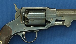 A fine American Rogers & Spencer Army Model 6 shot, 44 caliber single action Percussion Revolver with 7,5 inch barrel. Length 36 cm. in very good condition. Price 4.650 euro.
