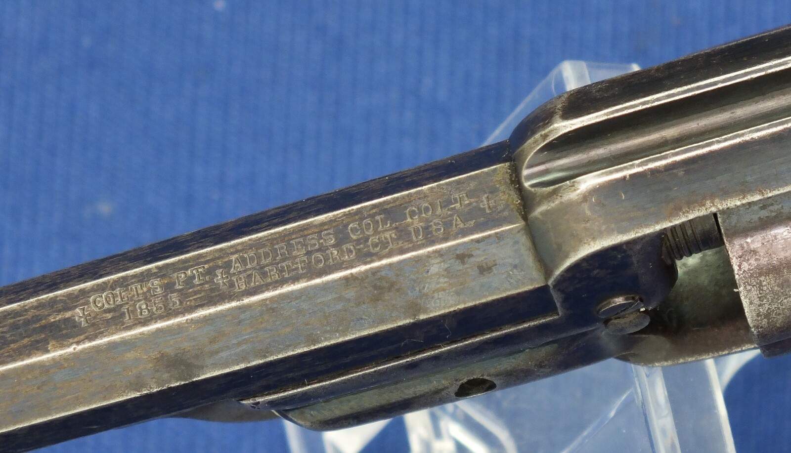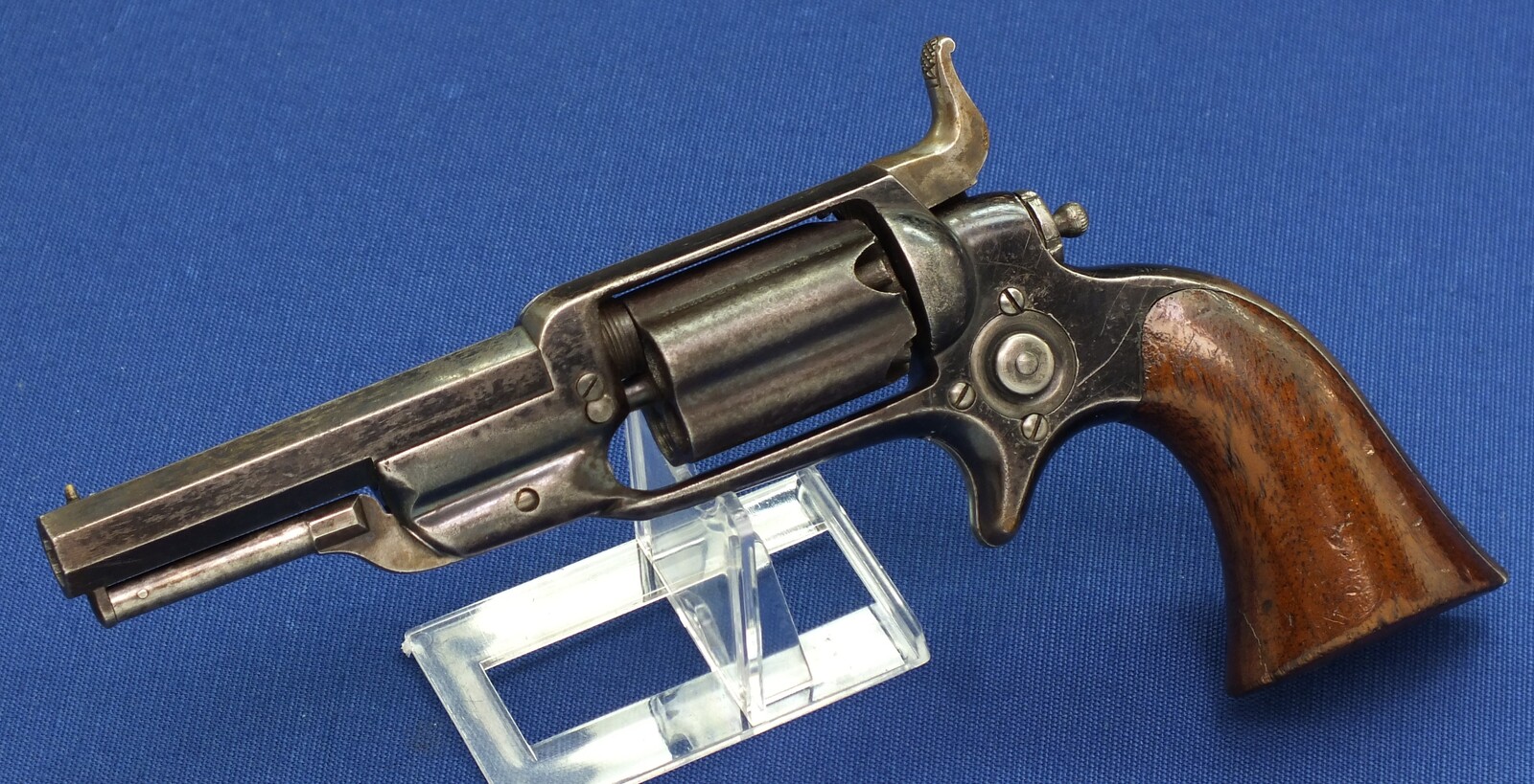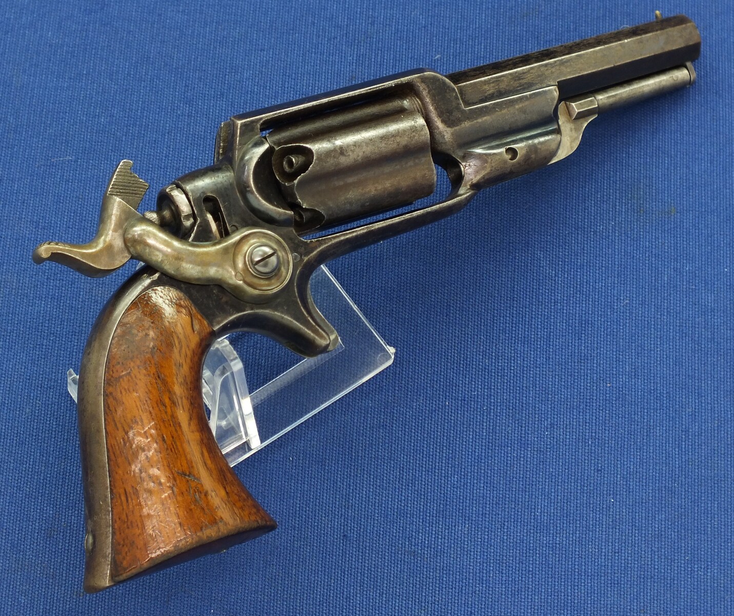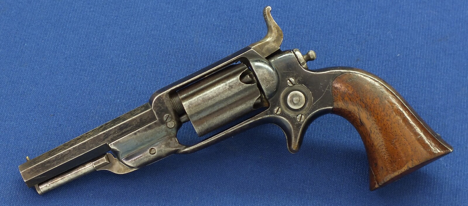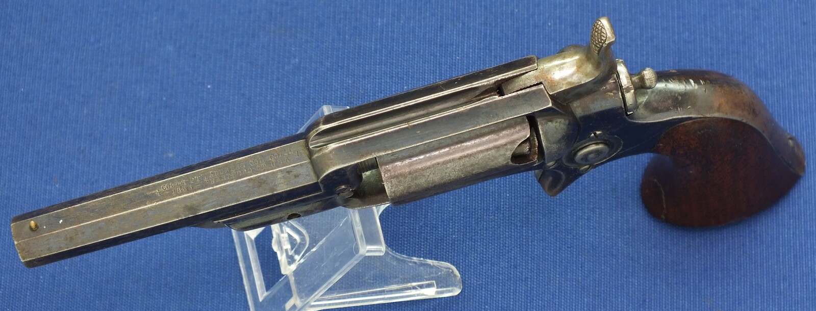 SN798 all matching numbers. A lot of original blue finish with some flaking . Fine varnished Walnut Grip