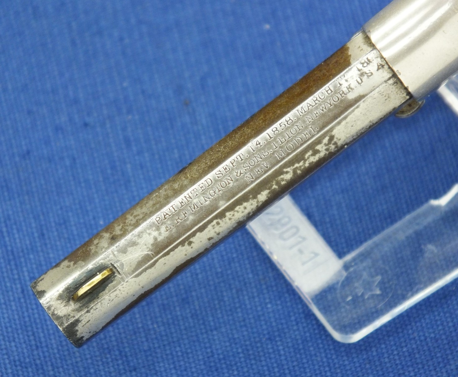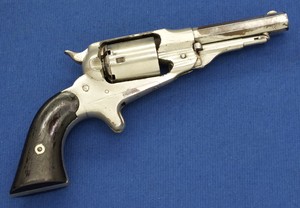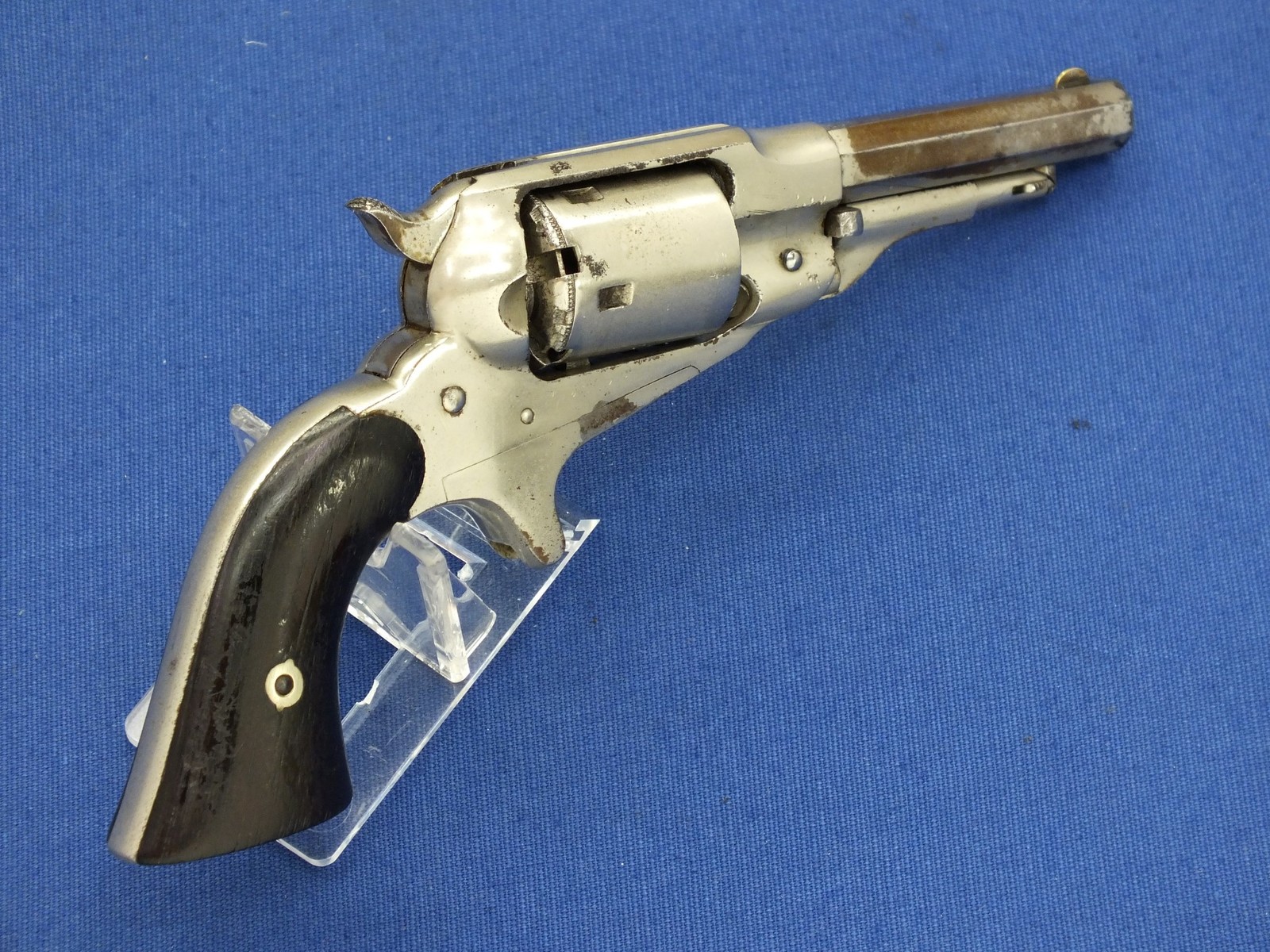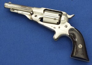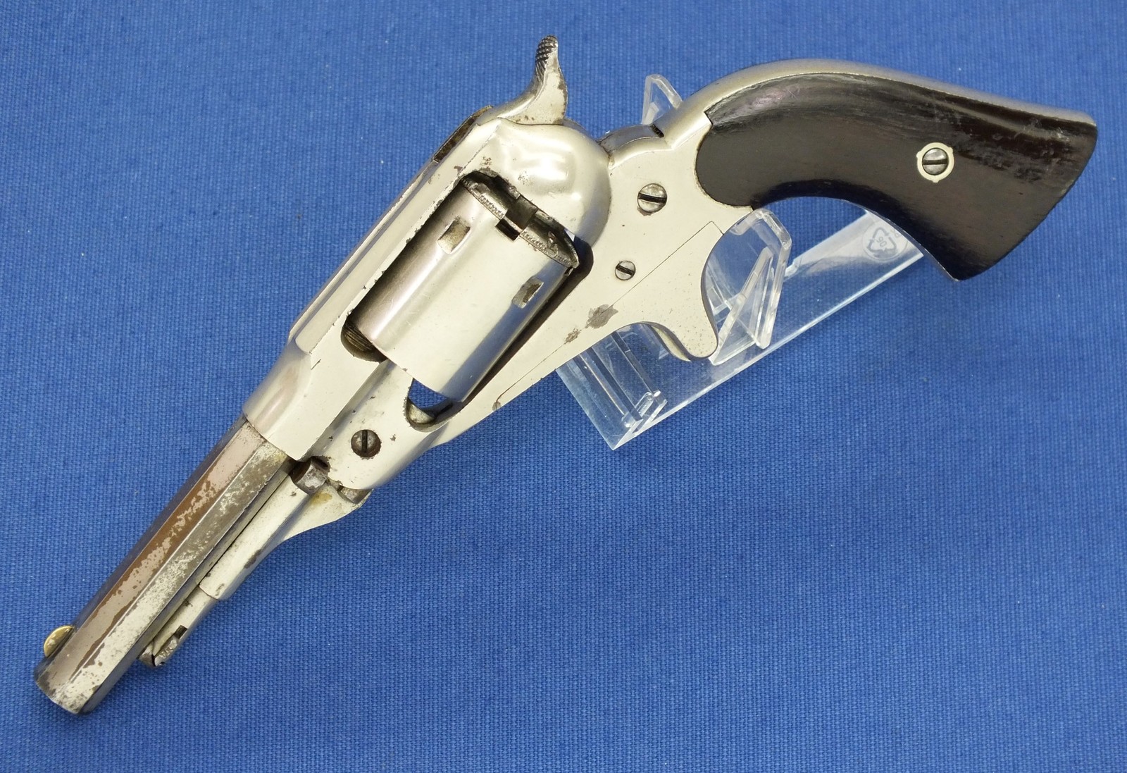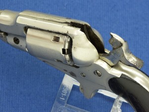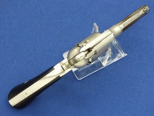 A lot of original Nickel Plating. Clear address on the barrel. SN 25713. Fine grips in original finish.