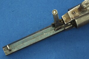 A rare Antique American 6 shot Second model William Irving Pocket Percussion Revolver. Made by James Reid NY under Contract for W.W. Marston NY. Caliber 31. Length 25cm. In very good condition. Price 1.650 euro.