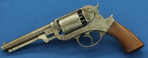 A scarce Antique American Civil War Starr Arms Co Model 1858 6 shot Double Action Percussion Navy Revolver. Caliber 36. Only 3000 made. Length 34cm. In very good condition. Price 2.750 euro.