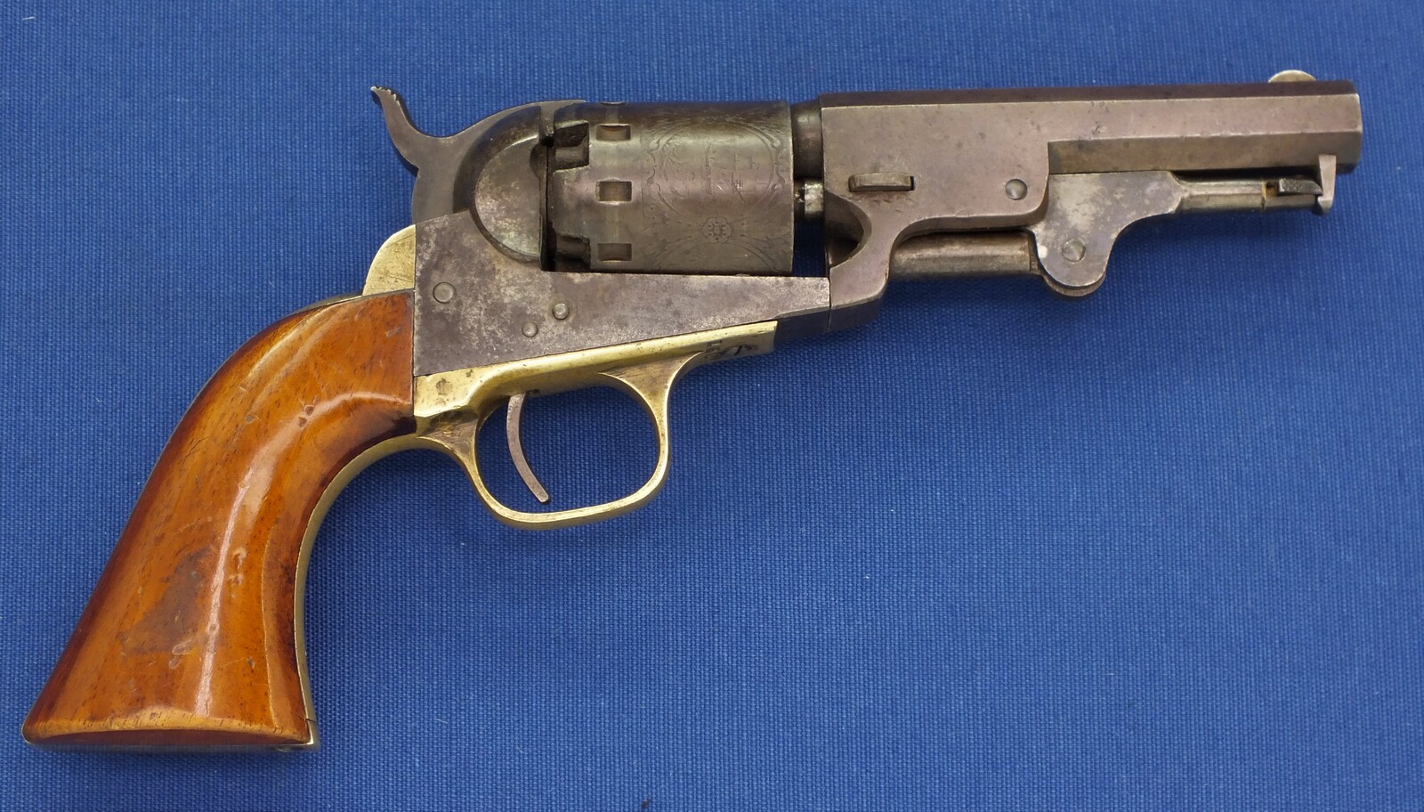 SN 15856 all matching. Clear address and cylinder scene and patent date. . Rests of original bleu and case hardening. Fine grip in original finish.