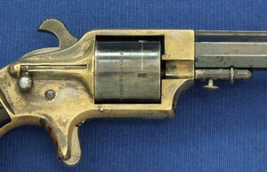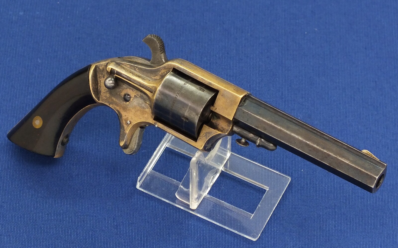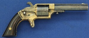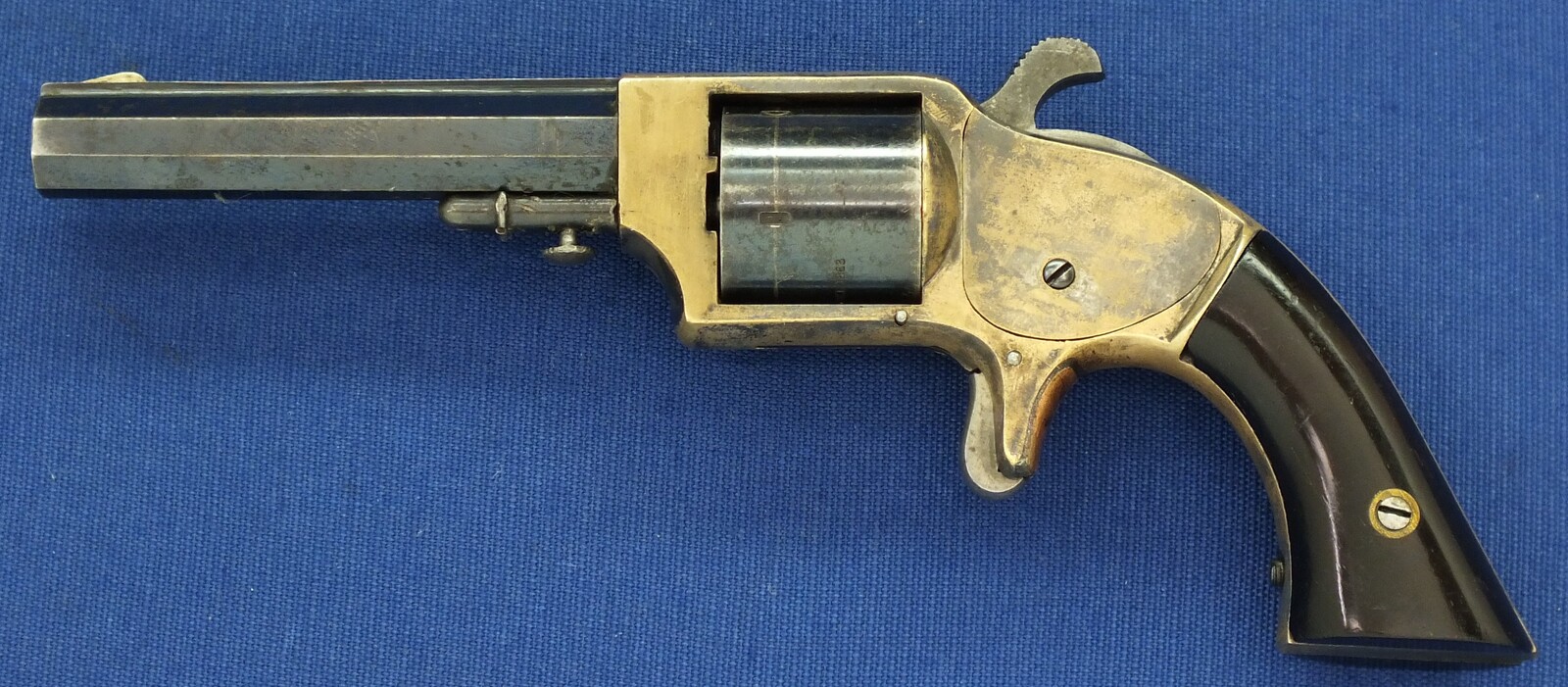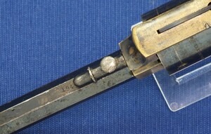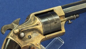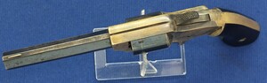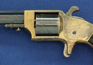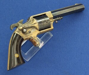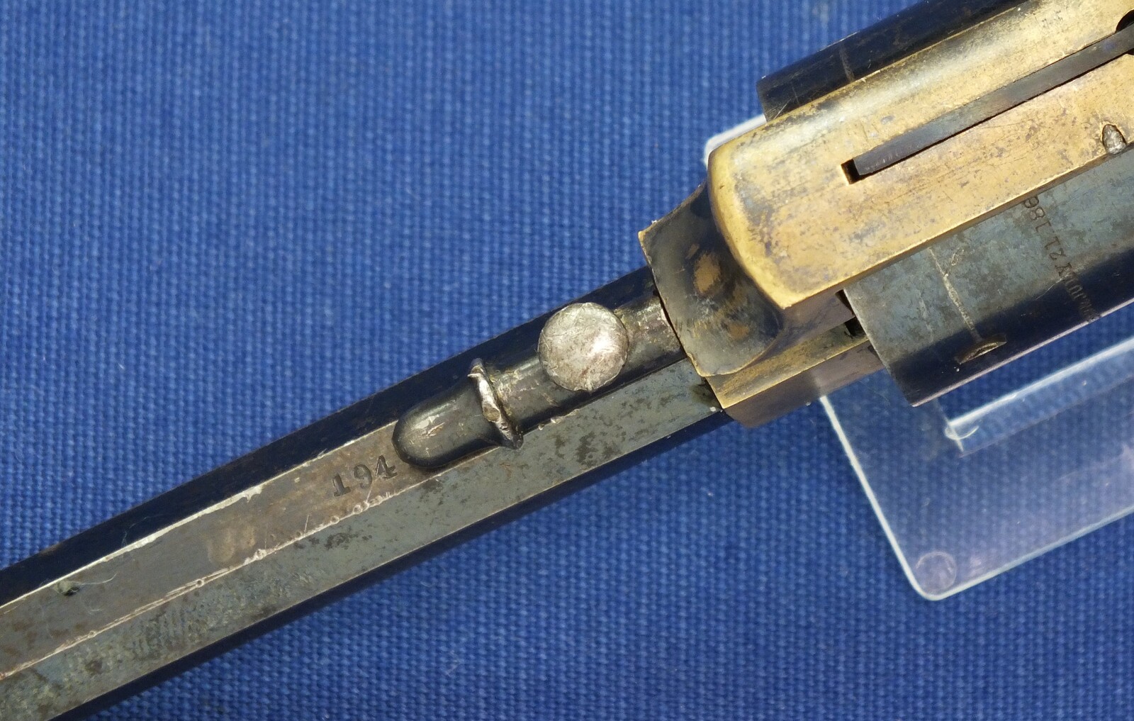 SN194/17. Fine Rosewood grips. A lot of original blue finish on barrel and cylinder and rests of Silverplating. Old period repair/re-inforcement on frame behind trigger