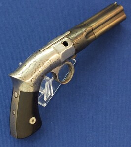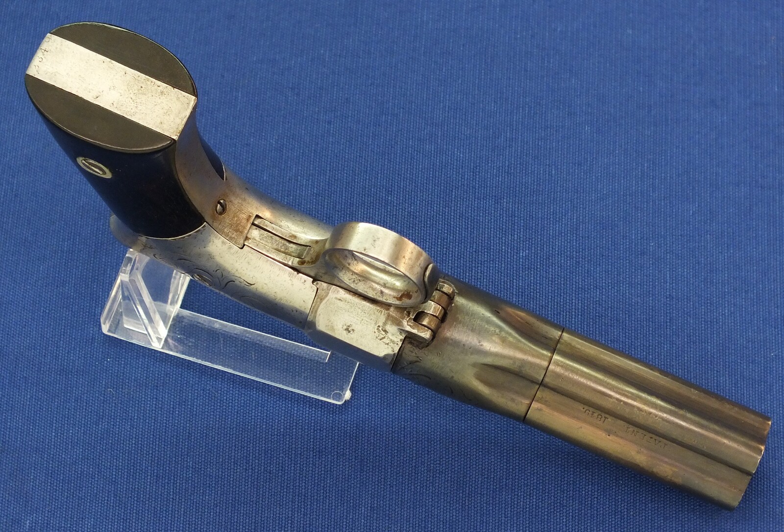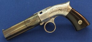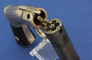An unrestored antique American Robbins & Lawrence 5 shot percussion Pepperbox, 31 Caliber, 2,1/4 inch barrel. Length 21cm. In fair condition
