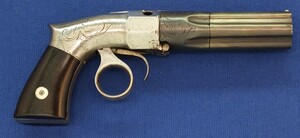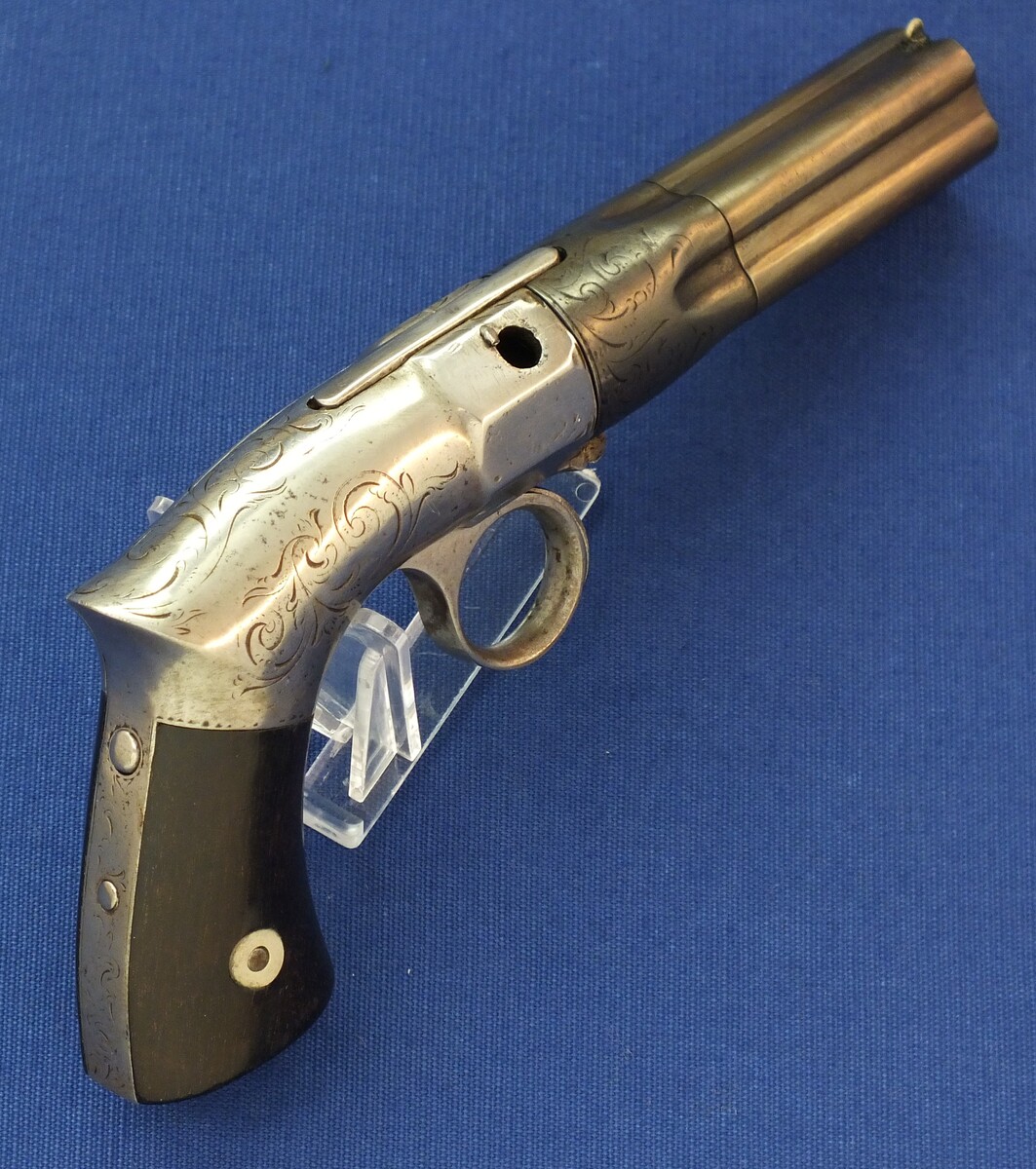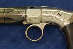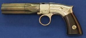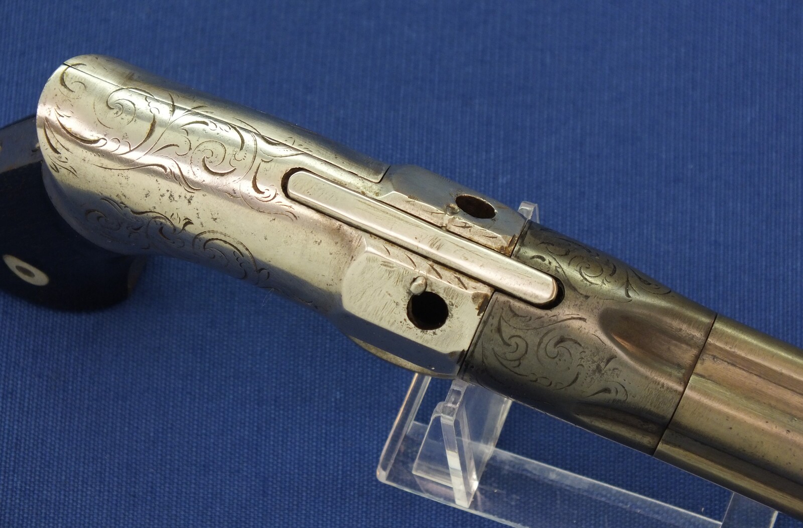 An unrestored antique American Robbins & Lawrence 5 shot percussion Pepperbox, 31 Caliber, 2,1/4 inch barrel. Length 21cm. In fair condition. Price 350 euro.