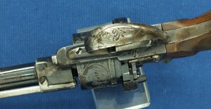 Fine chequered and Carved Walnut grips. Fine Engraved Parts. A lot of original blue finish present.