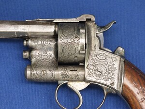 A fine antique scarce 19th century French Revolver signed Le Page Moutier Inventeur Brvt a Paris, caliber 12 mm Centerfire made circa 1860, length 21,5 cm. In very good condition. Price 5.500 euro