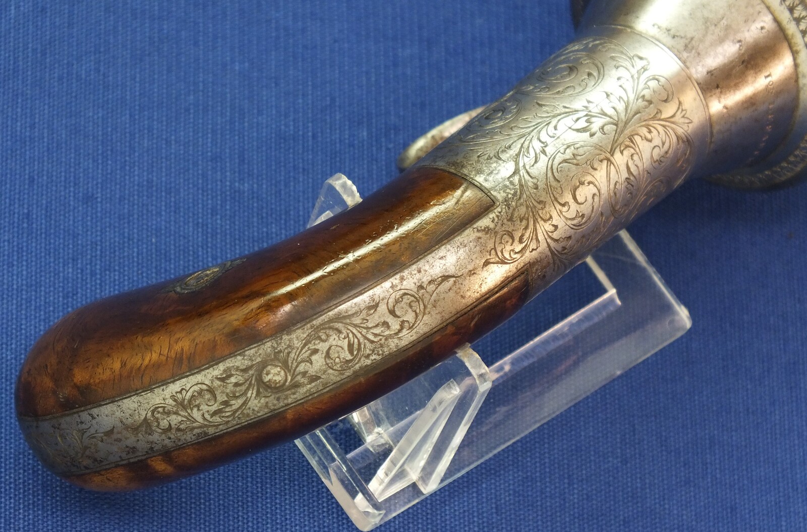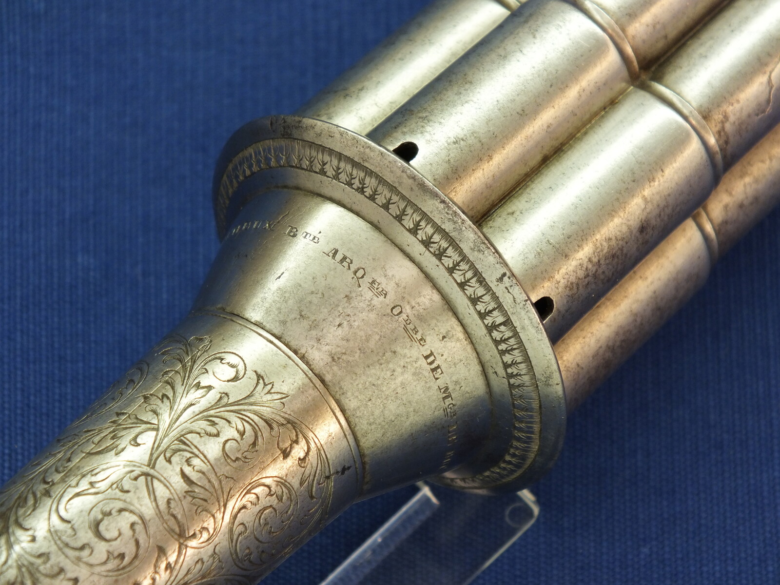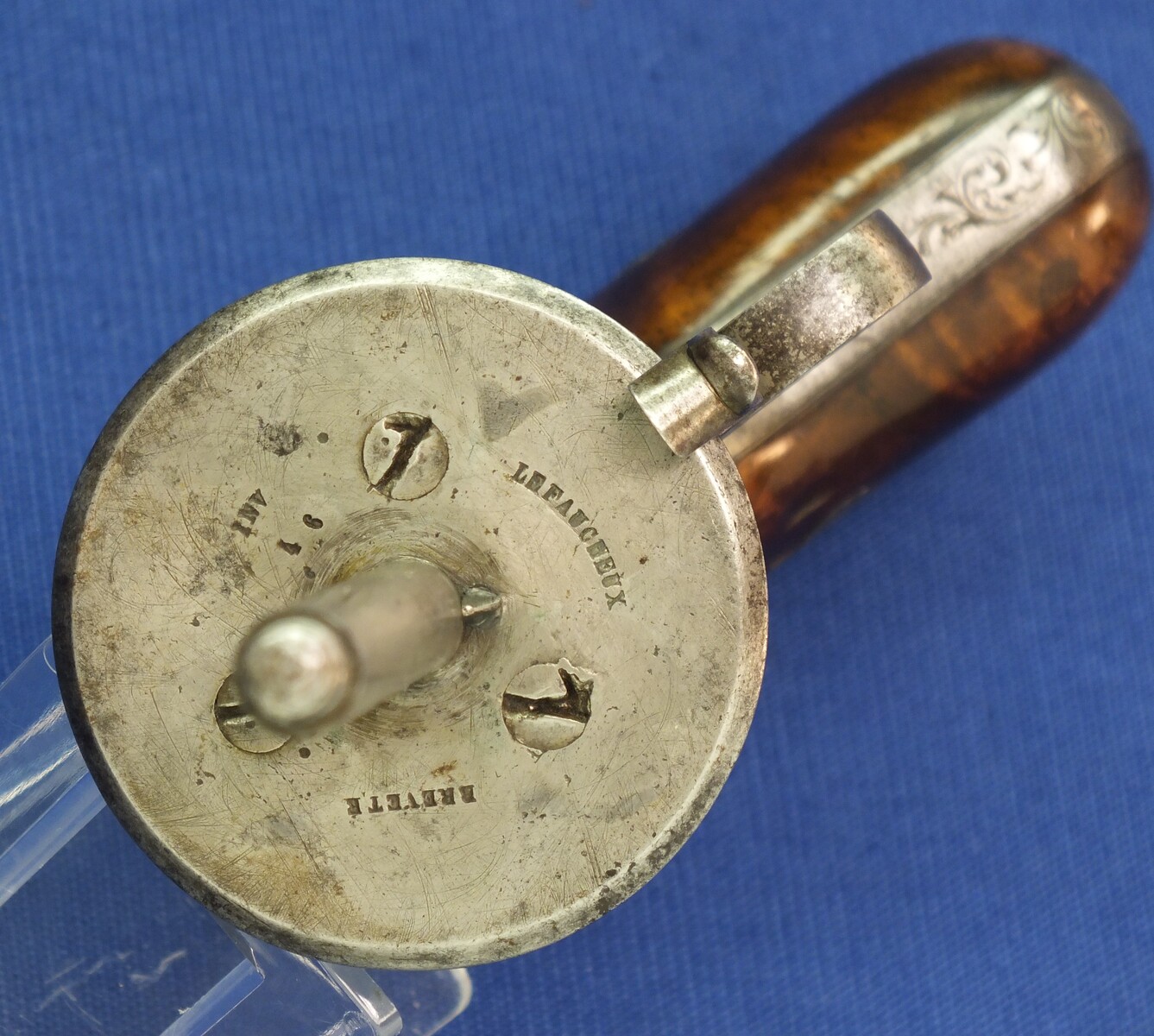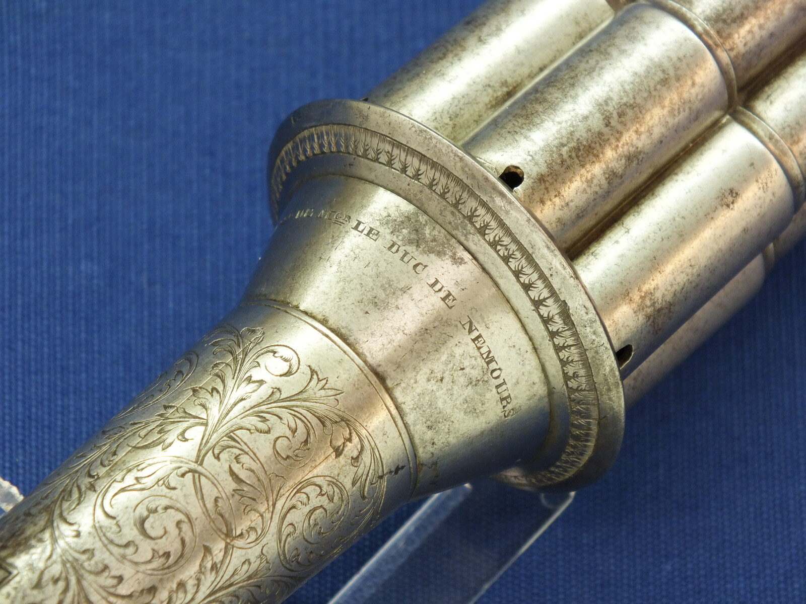A rare fine antique engraved French Casimir Lefaucheux 6 shot 12mm Pinfire system Mariette Pepperbox. Circa 1850. Length 23cm. In very good condition.
