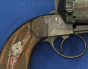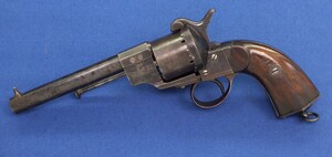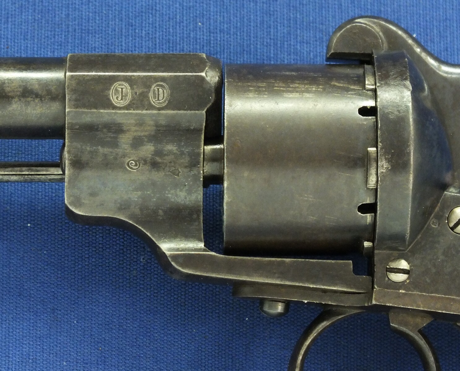 A scarce and fine antique French Navy/ De Marine Troupe Pinfire single action 6 shot Revolver Model 1858. Signed Mre Imp.ale de St Etienne. 12mm Caliber, length 31cm. In very good condition. Price 3.250 euro
